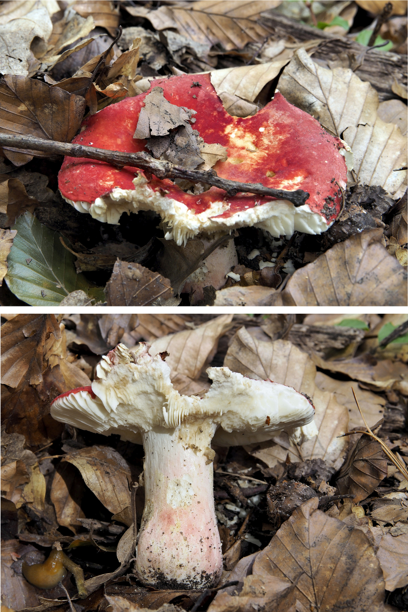 8) zu R20-041: starke Zweifel an R. atropurpurea; der Pilz ist zu klein und zu zerbrechlich, außerdem passt der angegebene Geschmack nicht. Eher R. fragilis als R. atropurpurea.