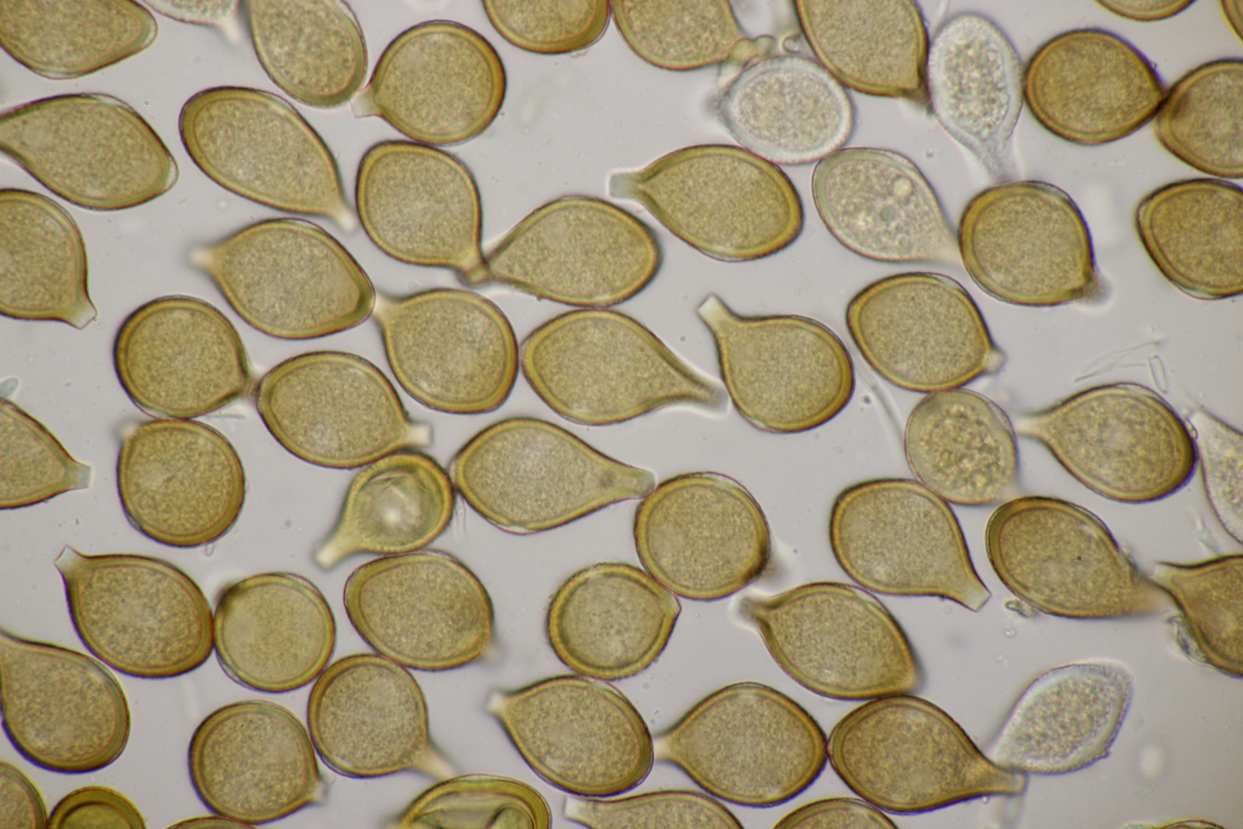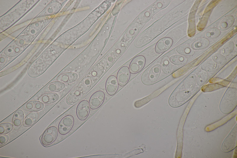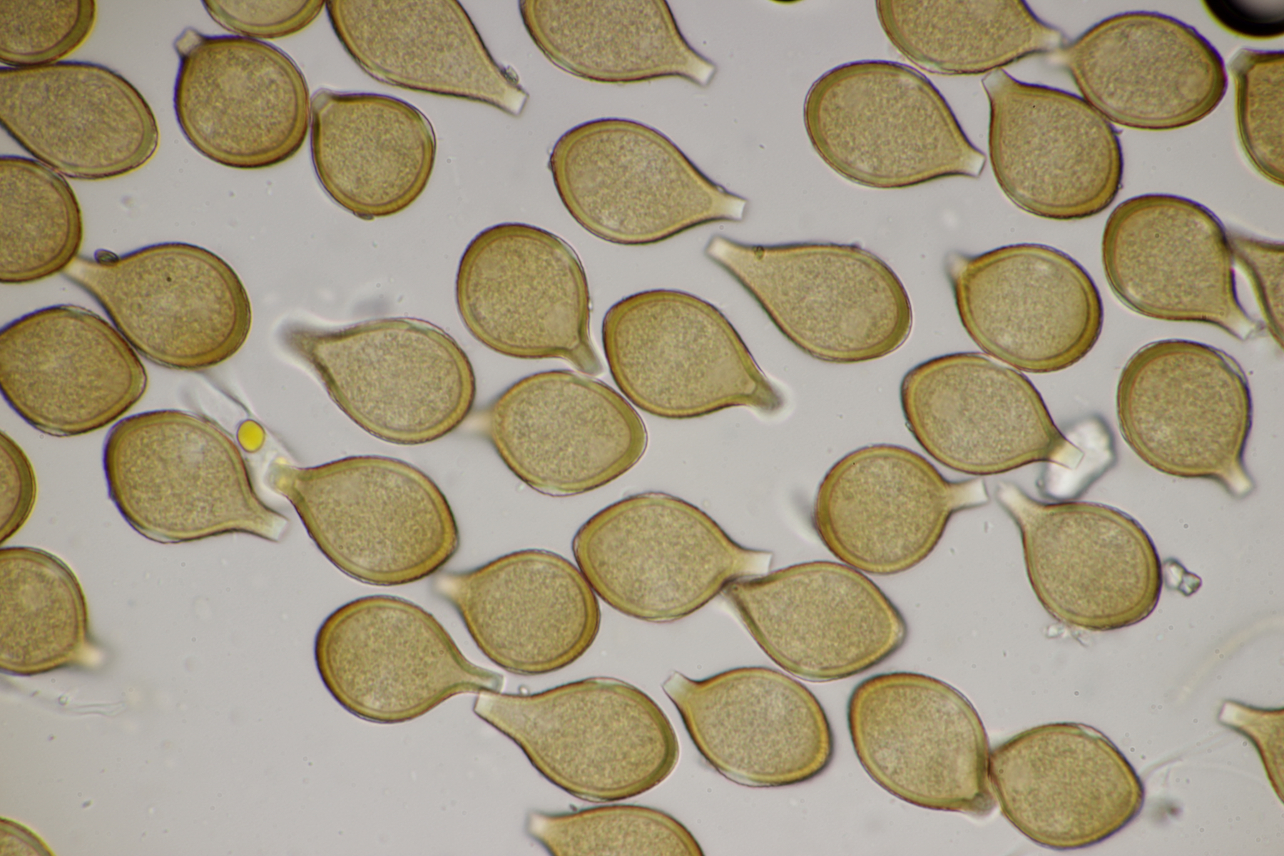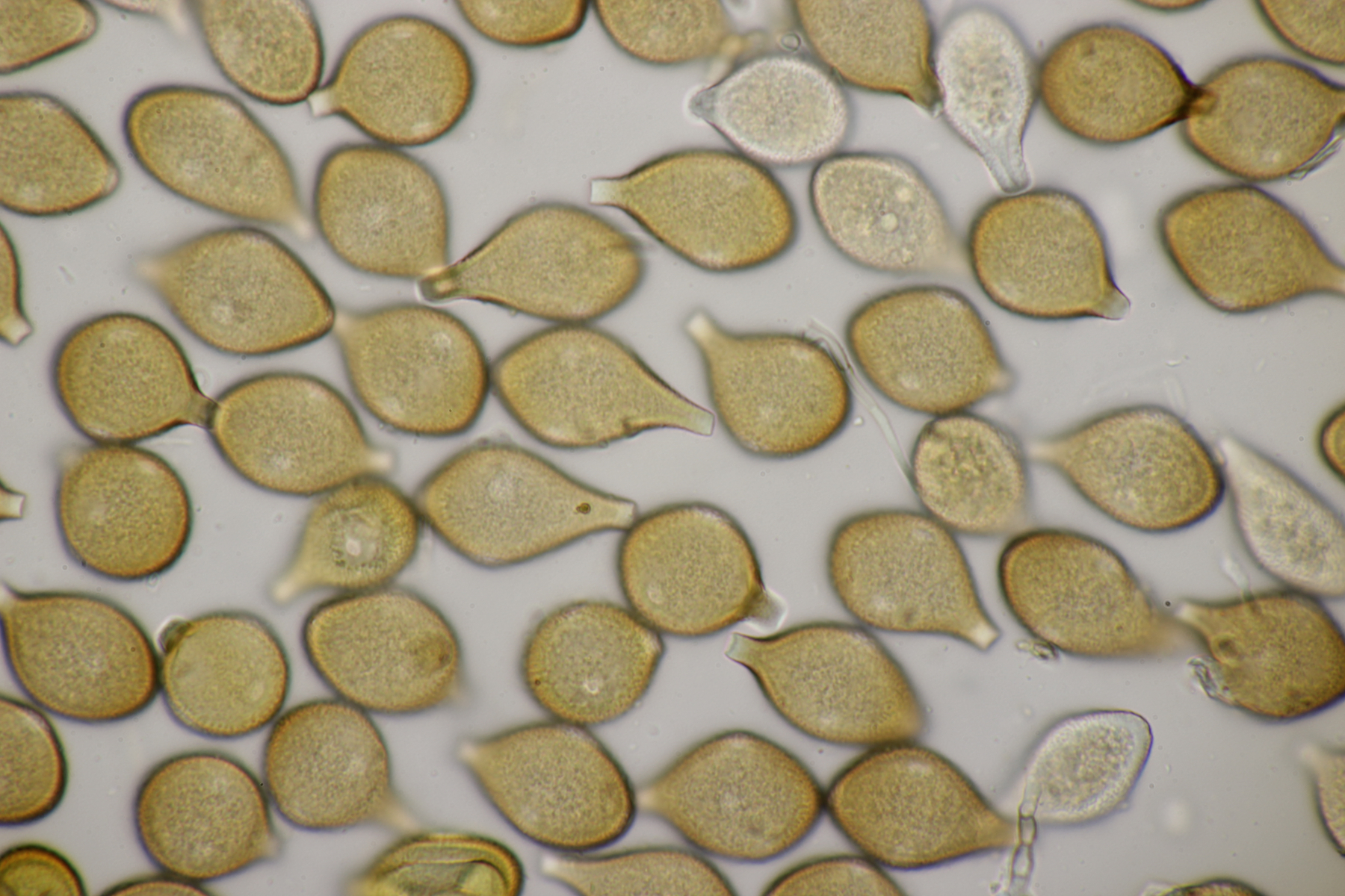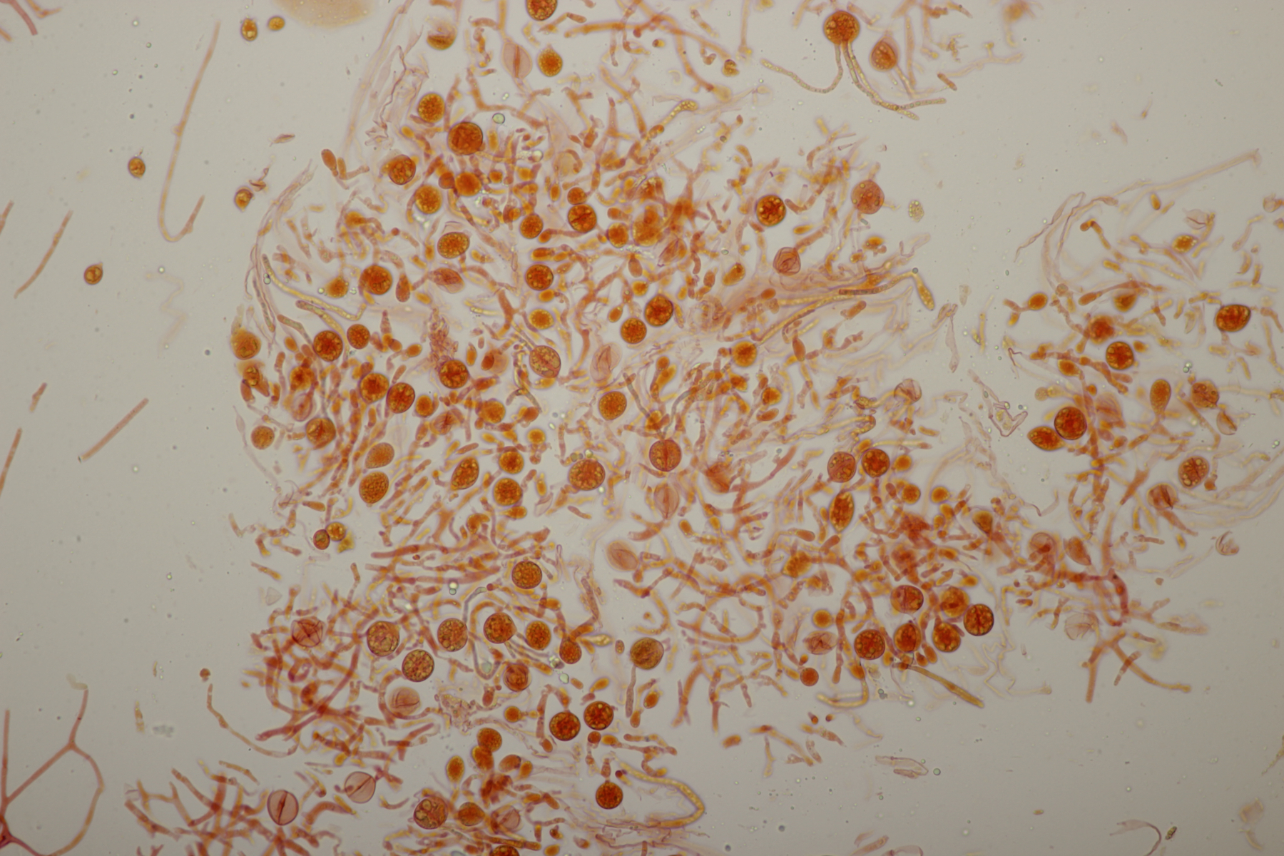 8. Auf Alnus glutiosa mit Stereum rugosum fand sich diese Phaeotremella. Sporen messen (8.9+-0.5) µm x (7.2+-0.3) µm, Q=1.2+-0.1, (8.1-9.8) µm x (6.7-7.8) µm, Q=1.1-1.3, das Exsikat war leicht schwärzend. Damit lande ich dann bei P. frondosa