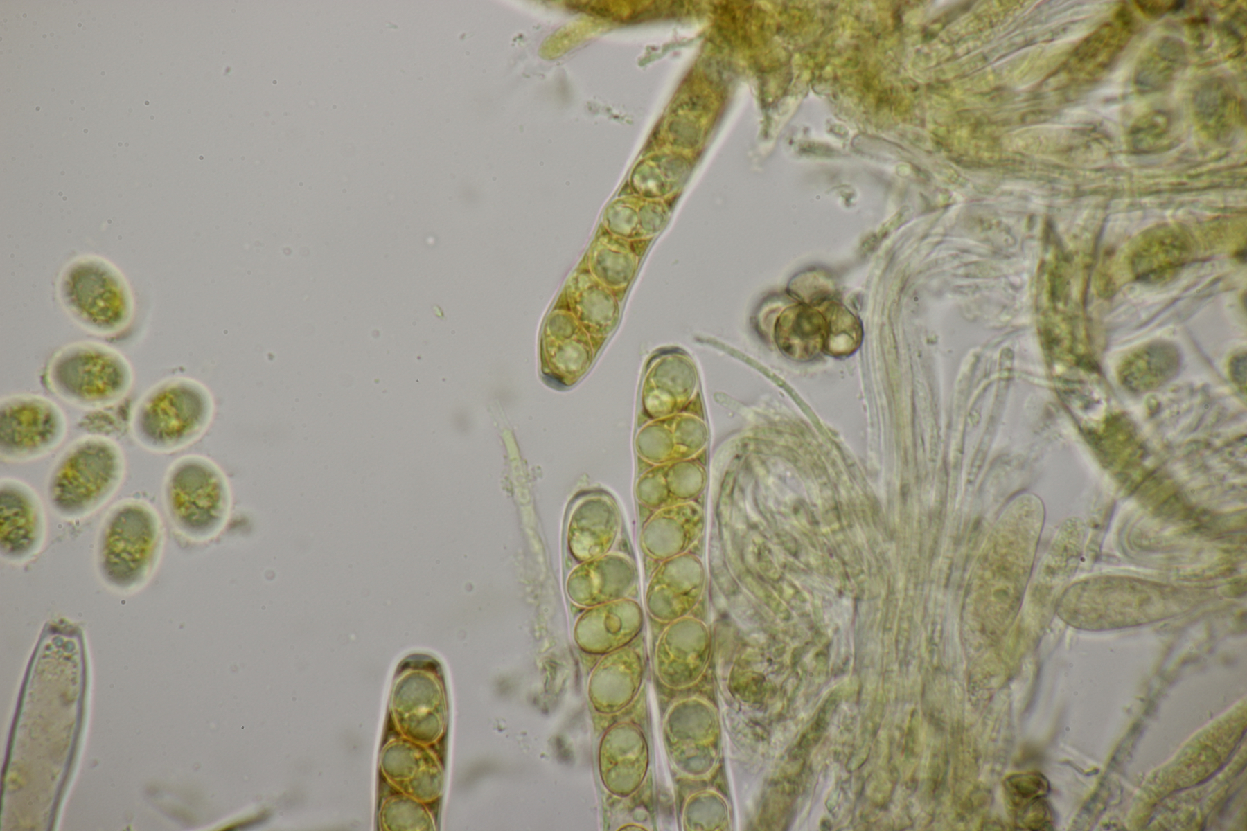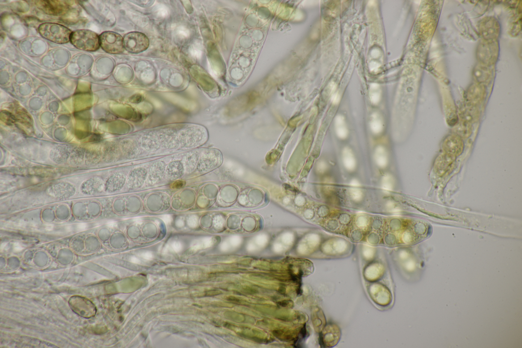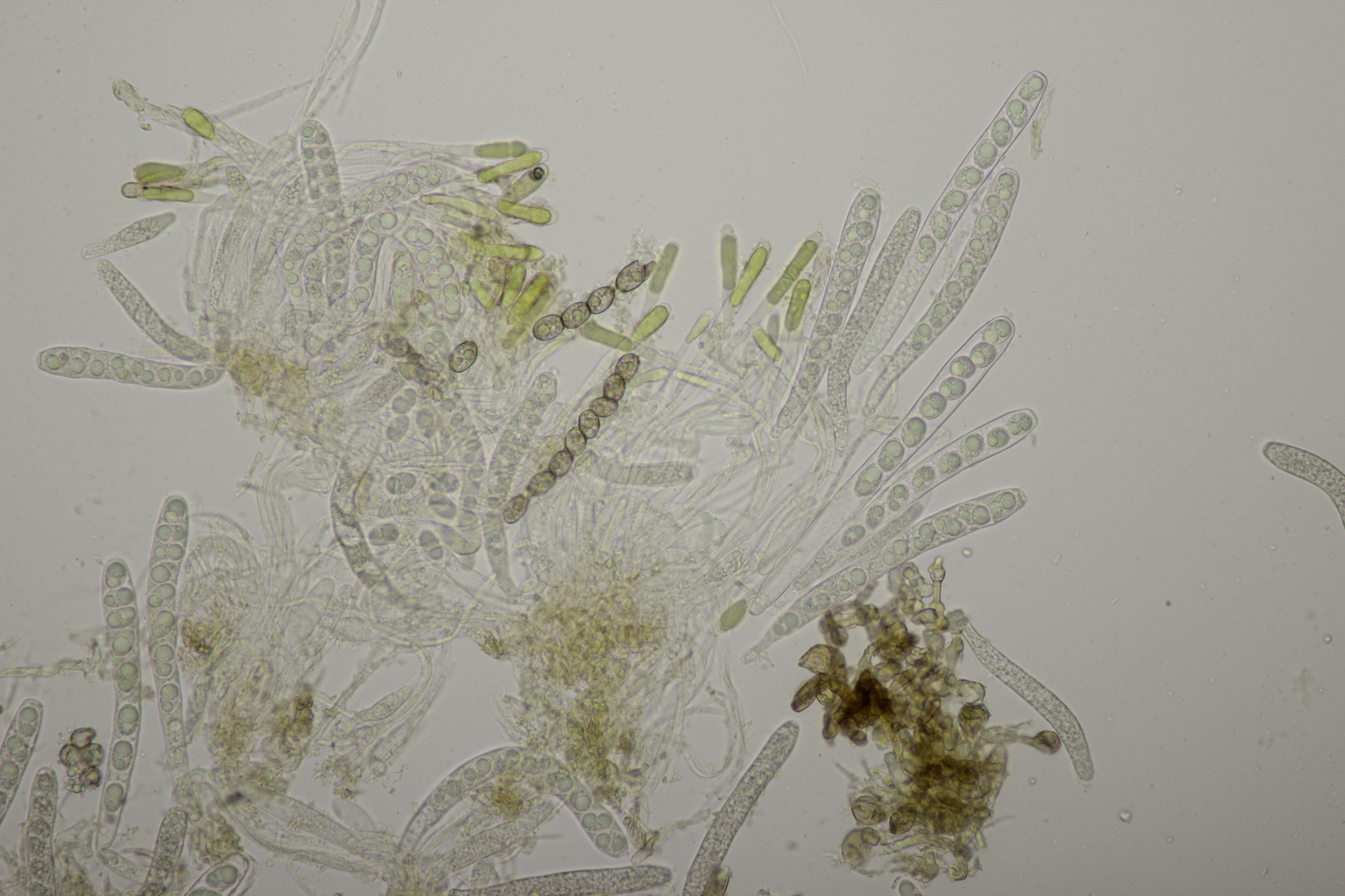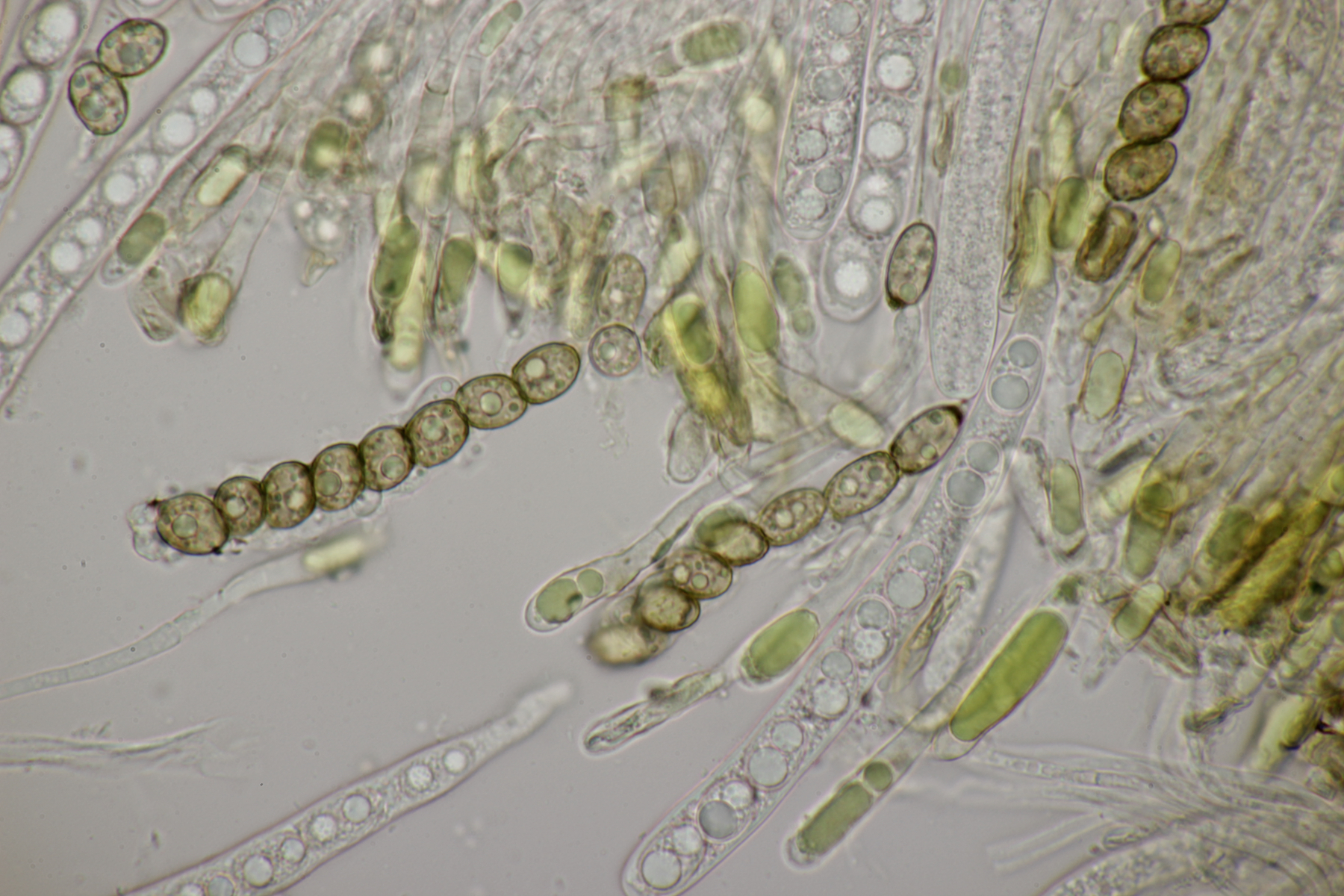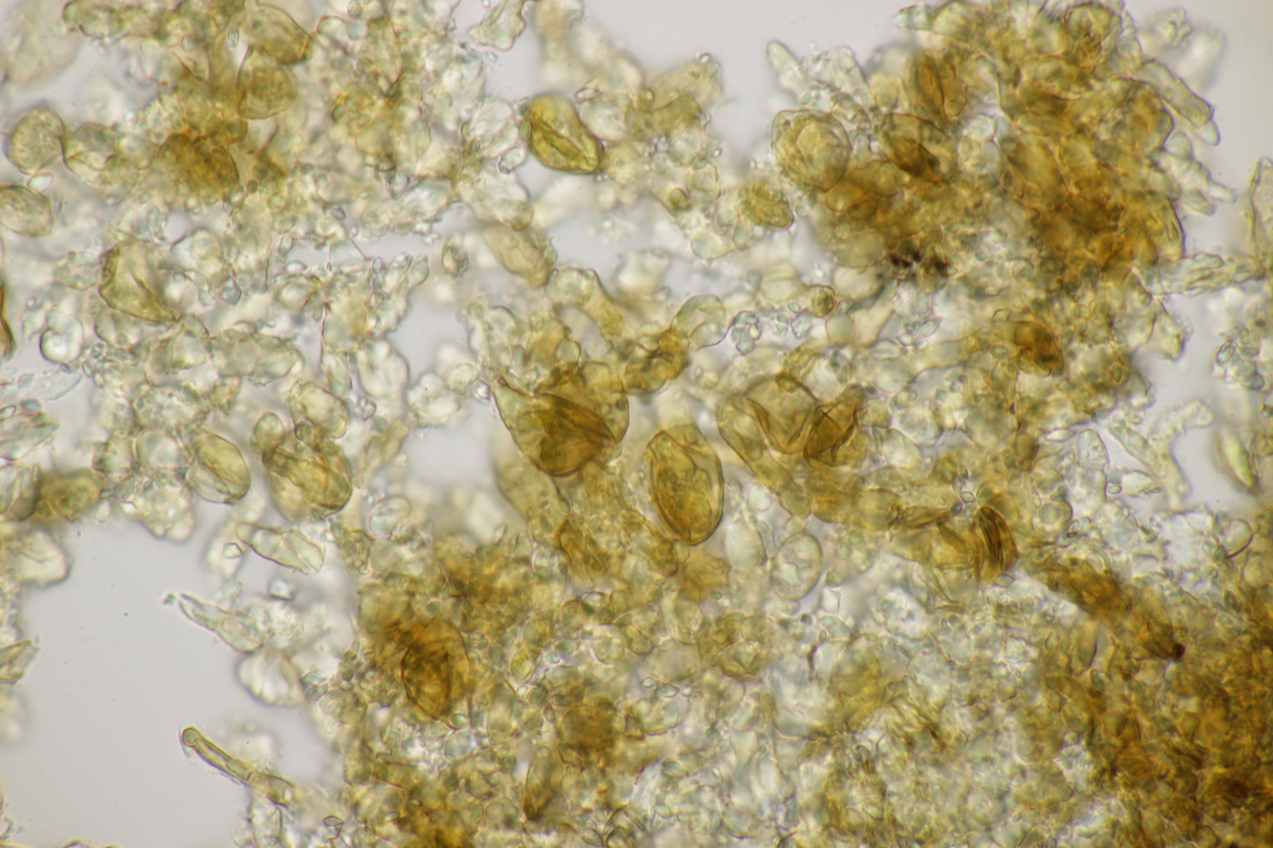 8. Auf Alnus glutiosa mit Stereum rugosum fand sich diese Phaeotremella. Sporen messen (8.9+-0.5) µm x (7.2+-0.3) µm, Q=1.2+-0.1, (8.1-9.8) µm x (6.7-7.8) µm, Q=1.1-1.3, das Exsikat war leicht schwärzend. Damit lande ich dann bei P. frondosa