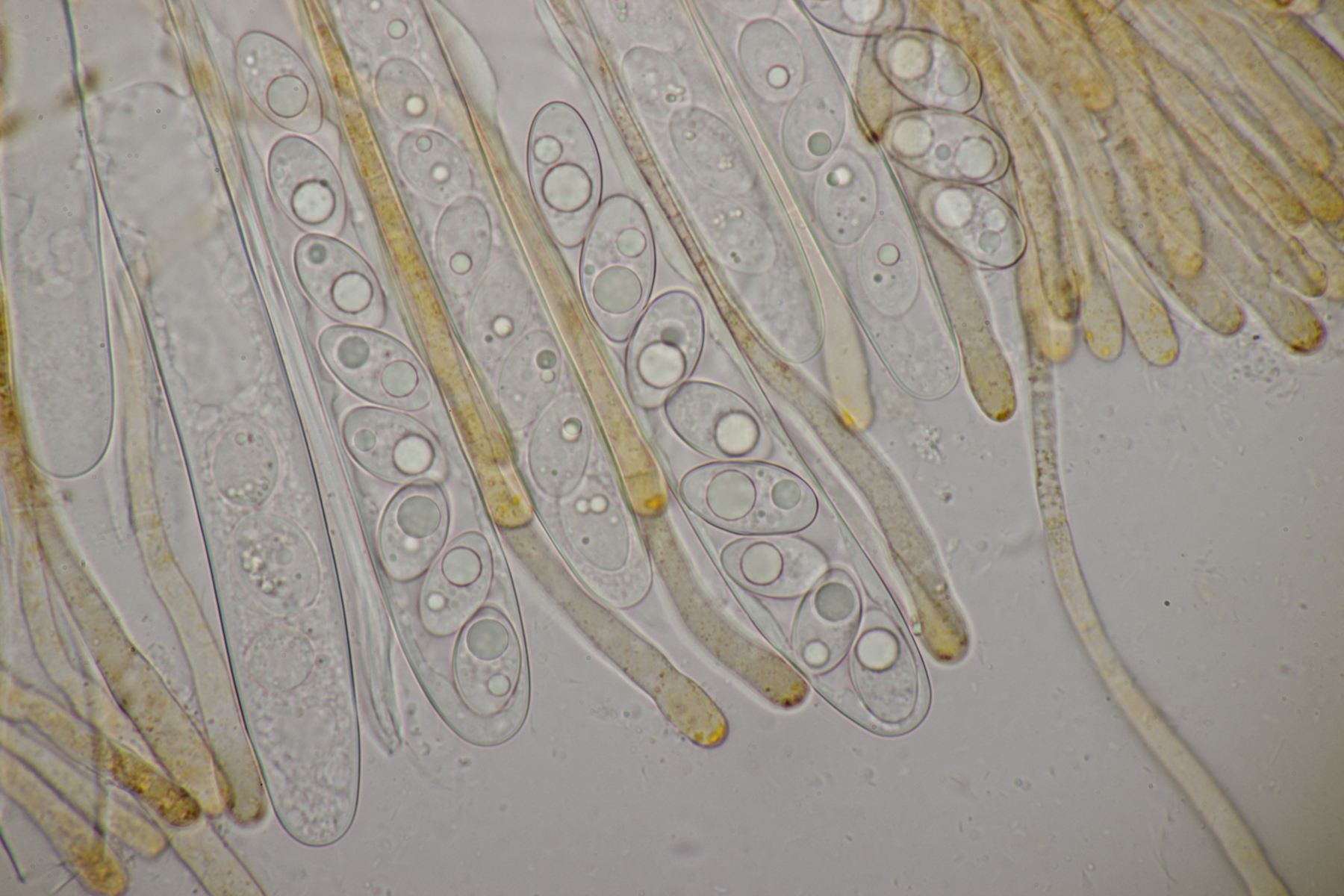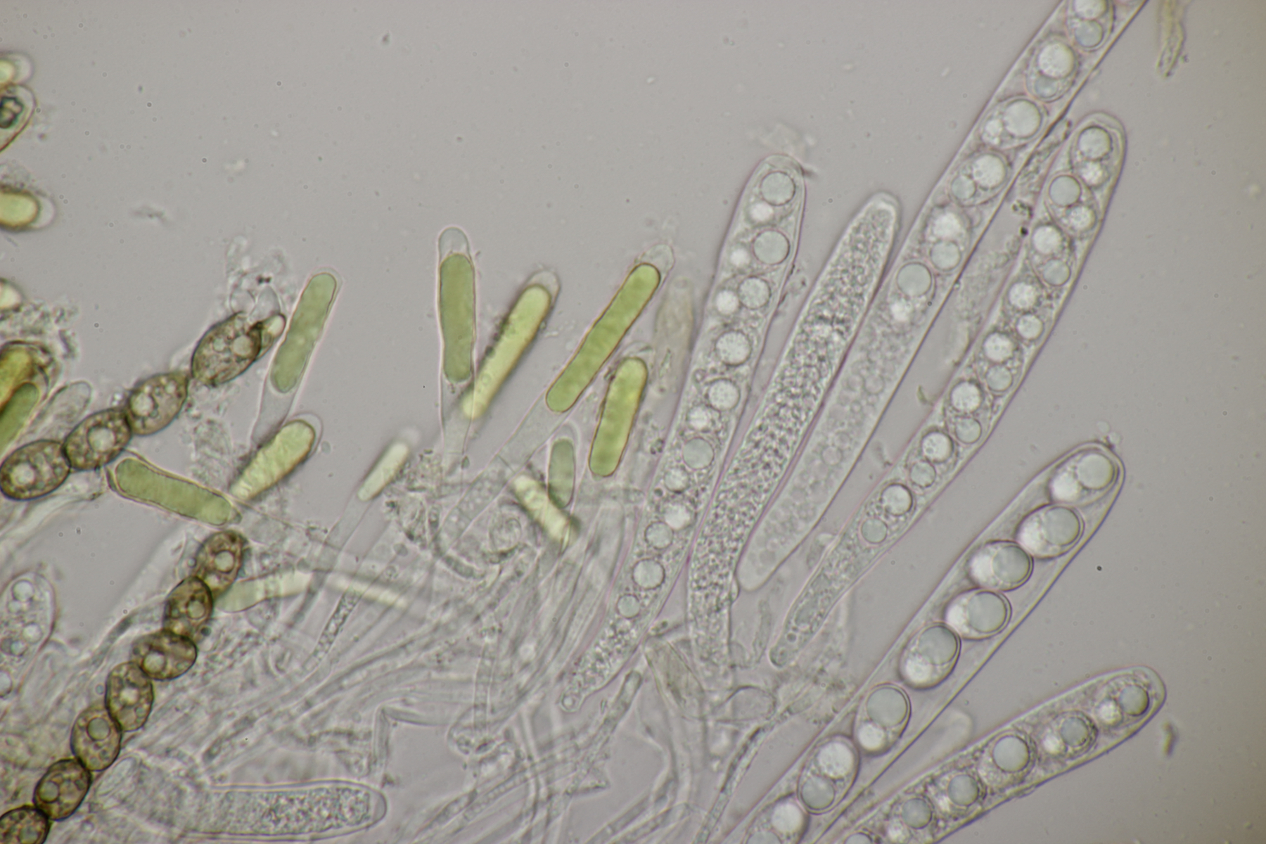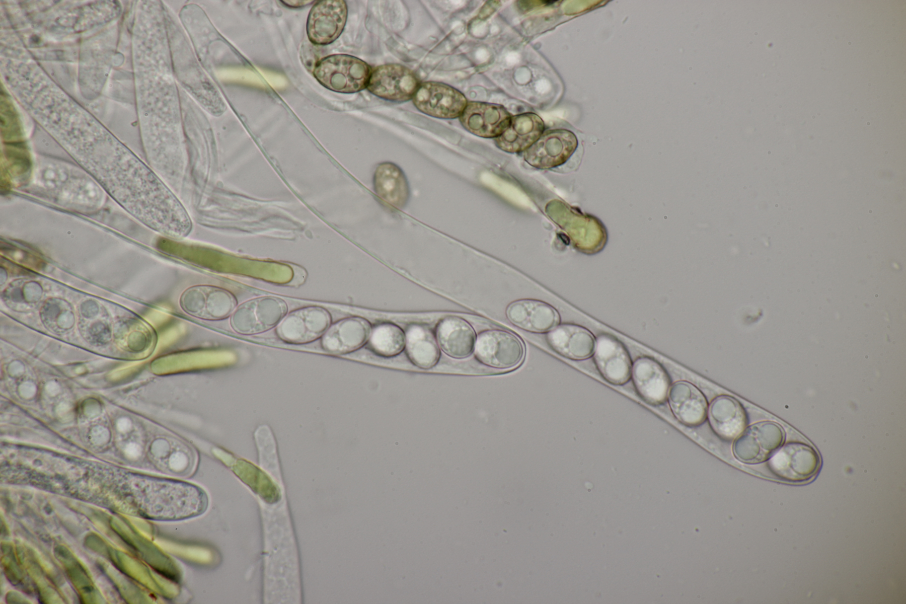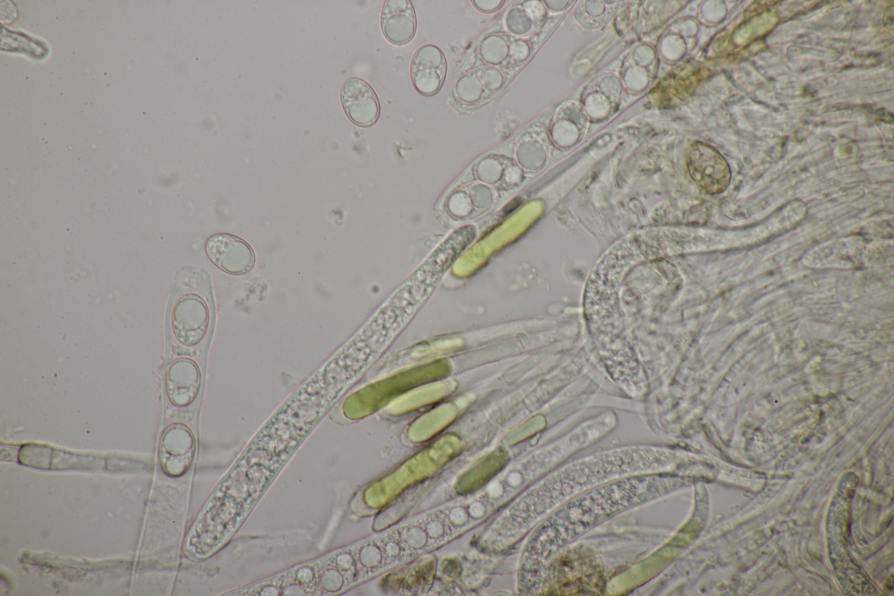 8. Auf Alnus glutiosa mit Stereum rugosum fand sich diese Phaeotremella. Sporen messen (8.9+-0.5) µm x (7.2+-0.3) µm, Q=1.2+-0.1, (8.1-9.8) µm x (6.7-7.8) µm, Q=1.1-1.3, das Exsikat war leicht schwärzend. Damit lande ich dann bei P. frondosa