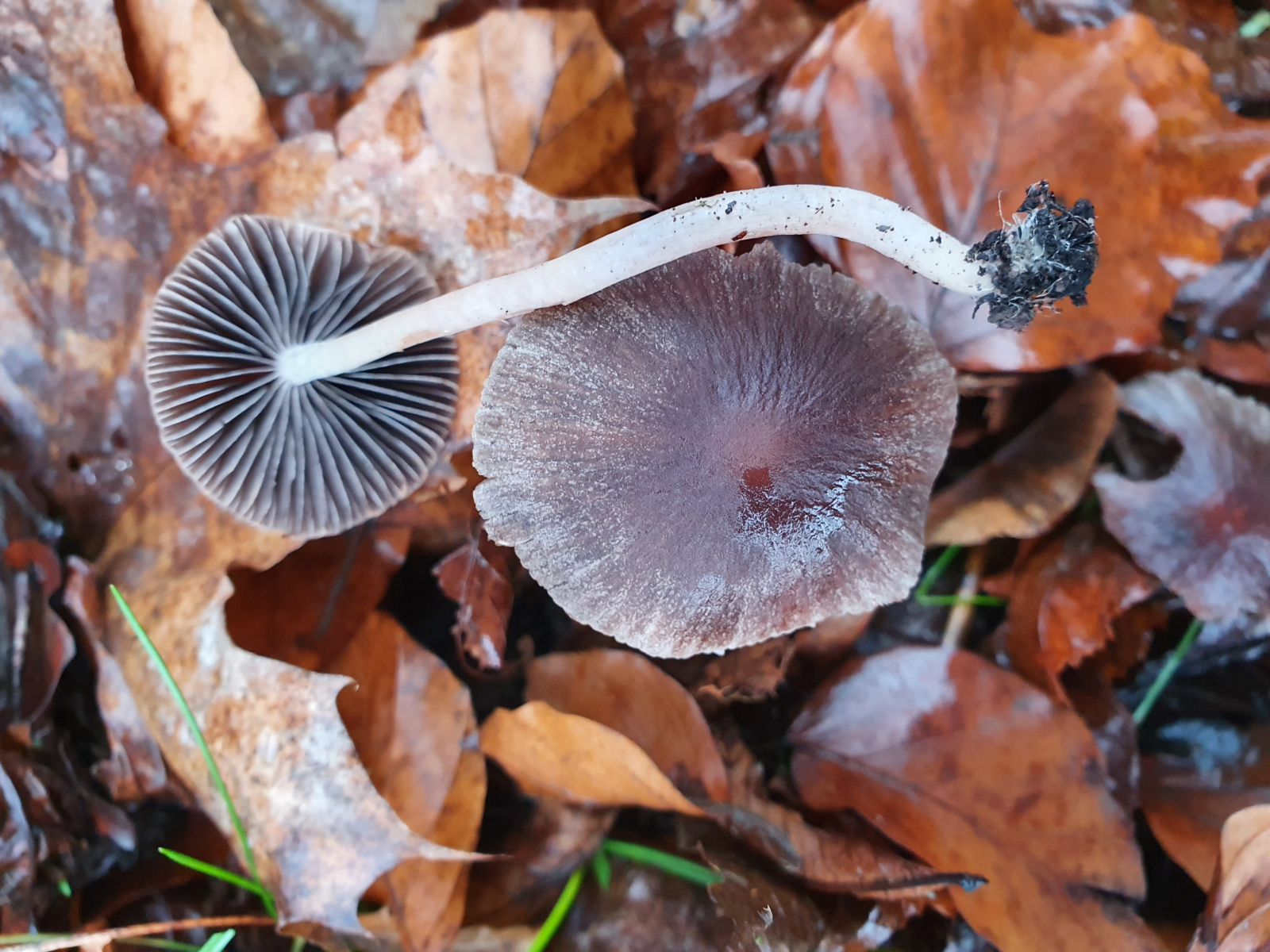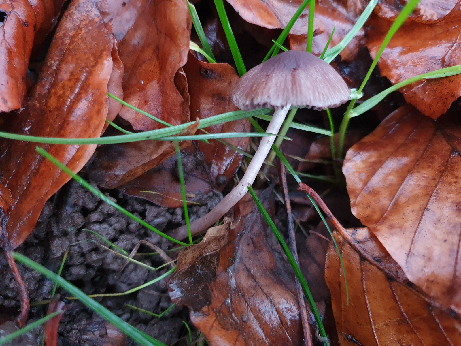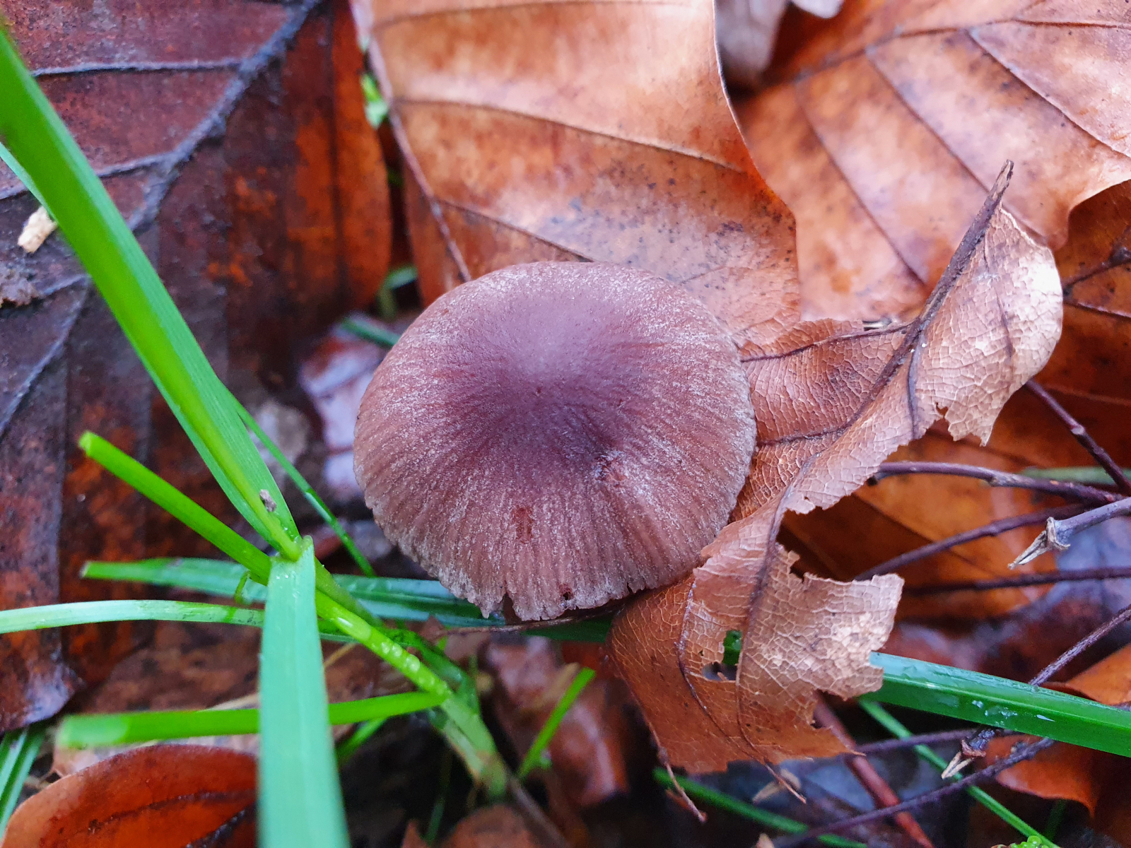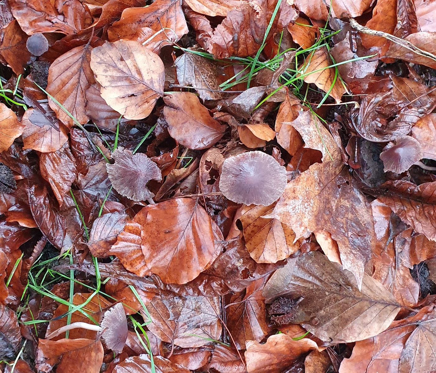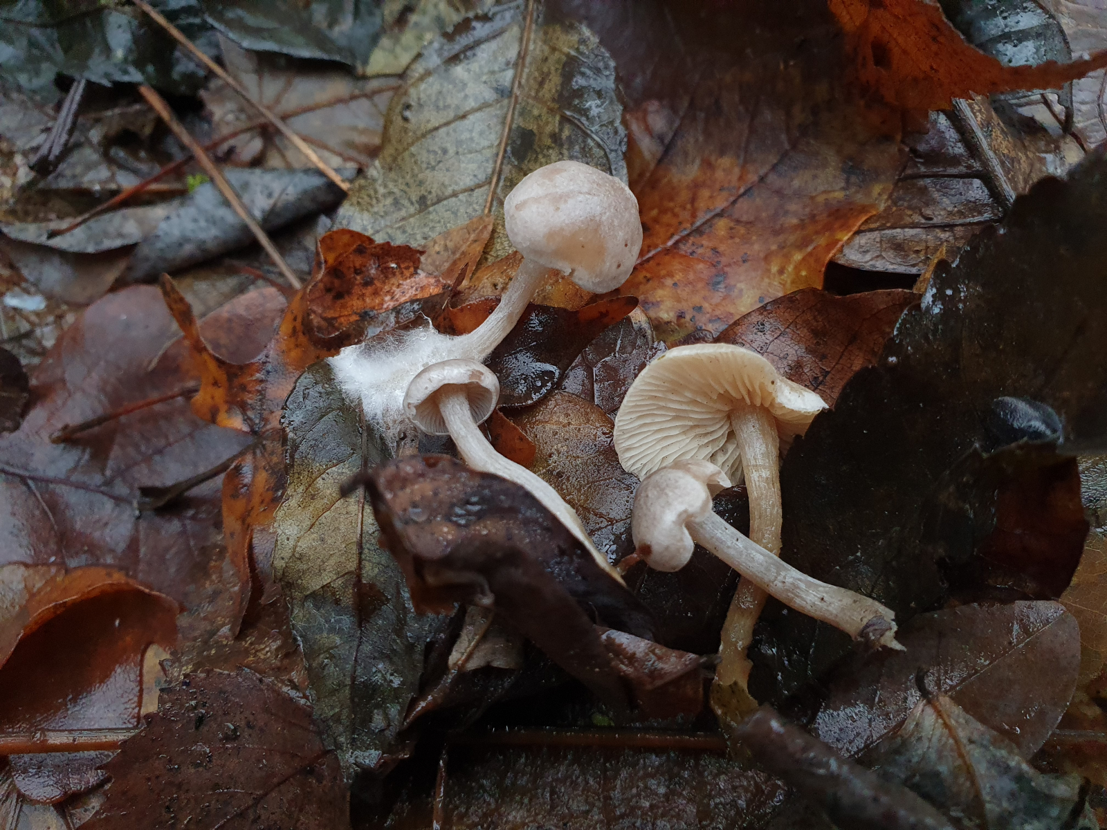 Gesellig wachsend unter Buchen, in der Nähe auch Birken. Es standen da aber auch noch andere, für mich nicht zu identifizierende Gehölze. Sie auch die länglich gezackten Laubblätter auf den Bildern. Die Pilze wuchsen jedenfalls definitiv saphrophytisch auf den Blättern. Sie wuchsen sehr gesellig. Es waren zahlreiche kleine Fruchtkörper zu finden, im Schnitt 1,5cm große Hüte, nur vereinzelt etwas größer, viele jüngere Stadien.