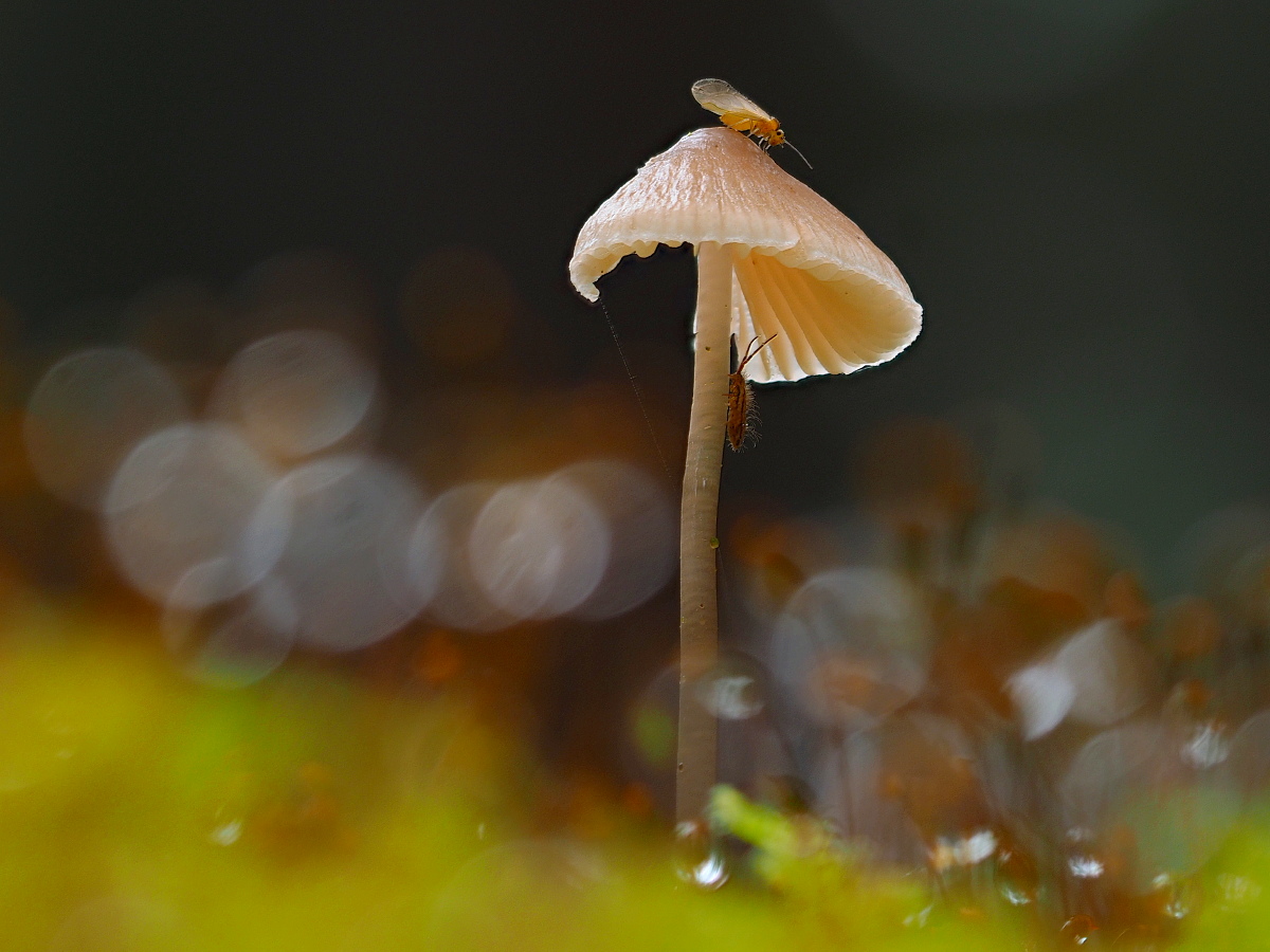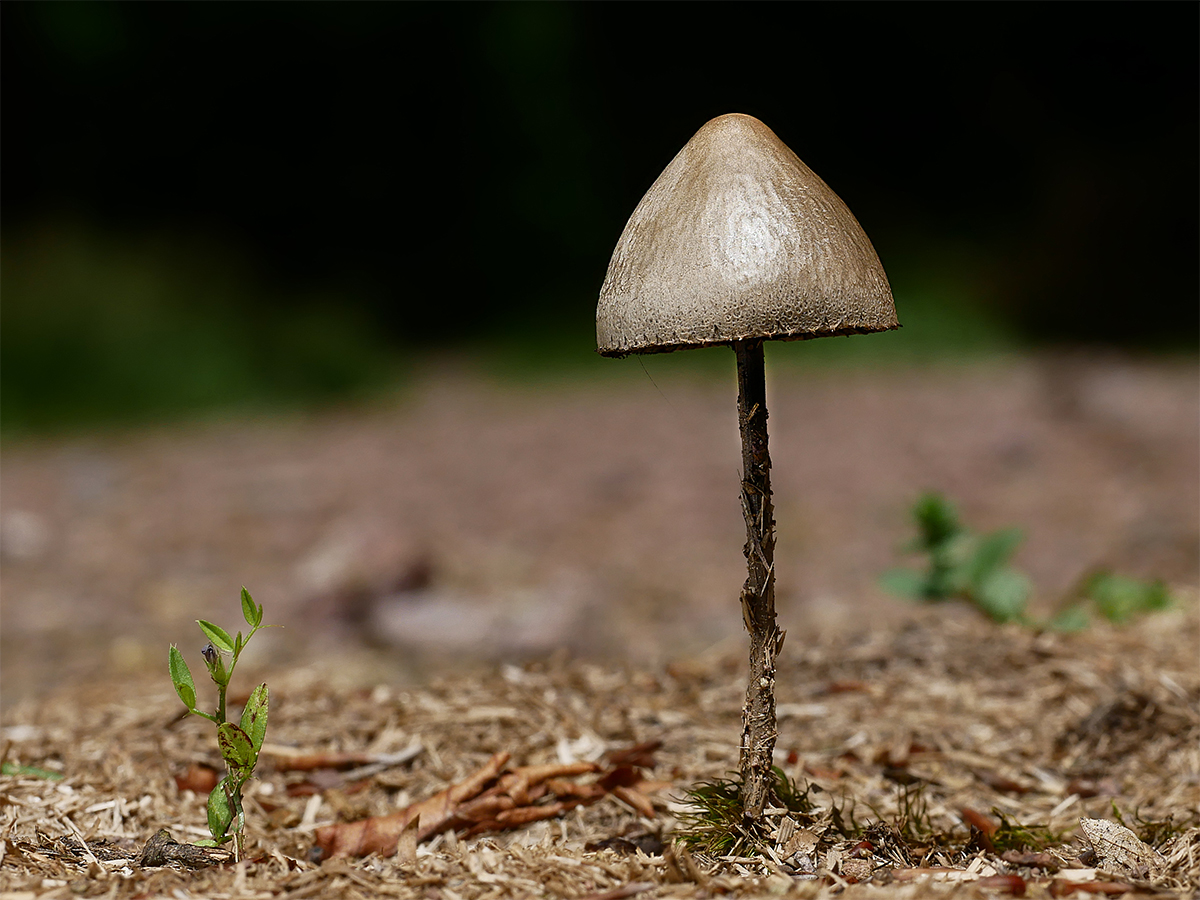 • Das Foto wäre vermutlich noch besser gewesen, wenn die Kamera noch etwas tiefer gelegen hätte und der Pilzhut somit vor dem schwarzen Hintergrund wäre.