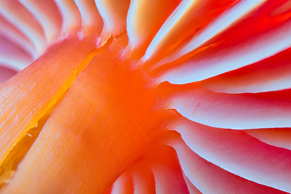 Auch Bild 7 ist schön. Der Riss im Stiel stört ein wenig und an den hellen Stellen sehe ich einen deutlichen Blaustich. Gehört der so? Das Motiv „Pilzlamellen in durchscheinendem Licht“ ist auf Timms Startseite grandios gut umgesetzt. Da hinkt Bild 7 etwas hinterher.