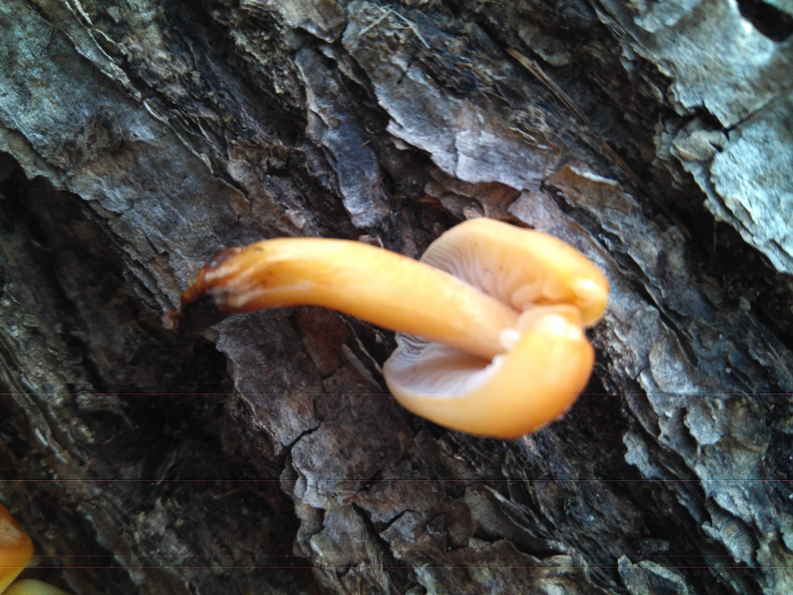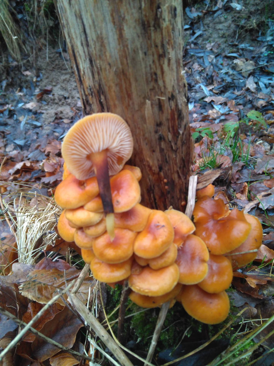 10. Samtfußrüblinge (Flammulina velutipes), diese hier hatten einen auffällig schwarz-samtigen Stiel: