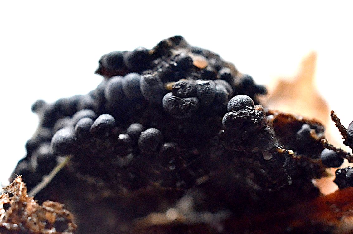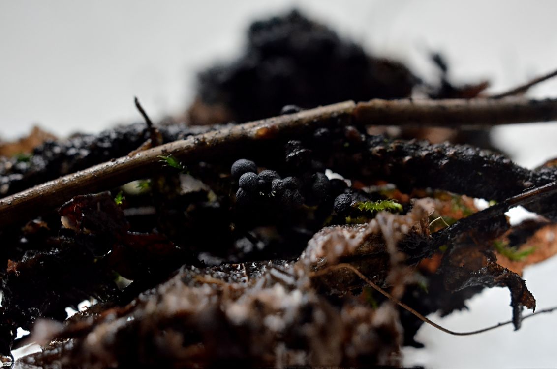 Makroskopisch müßte dann im Fruchtkörperinnern ein weißes Kalkgerüst (Capillitium) sein. Dann wäre zumindest die Gattung sicher.