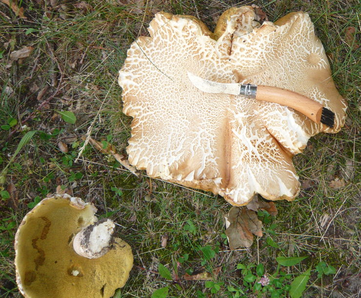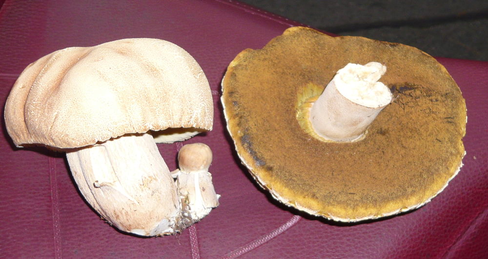 An einer Stelle (und auch wirklich nur dort, kleines Waldstück ca 3-4 ha Hochwald Kiefer,an der ich seit 35 Jahren regelmäßig Maronen, Steinpilze und Pfifferlinge finde, habe ich erstmals umletzten Jahr und dann heute wieder diesen Pilz in großen Mengen gesichtet. Hutfarbe wie Steinpilz, gelber Schwamm, hellbrauner Stil, innen gelb. Um was handelt es sich? Bin völlig ahnungslos!