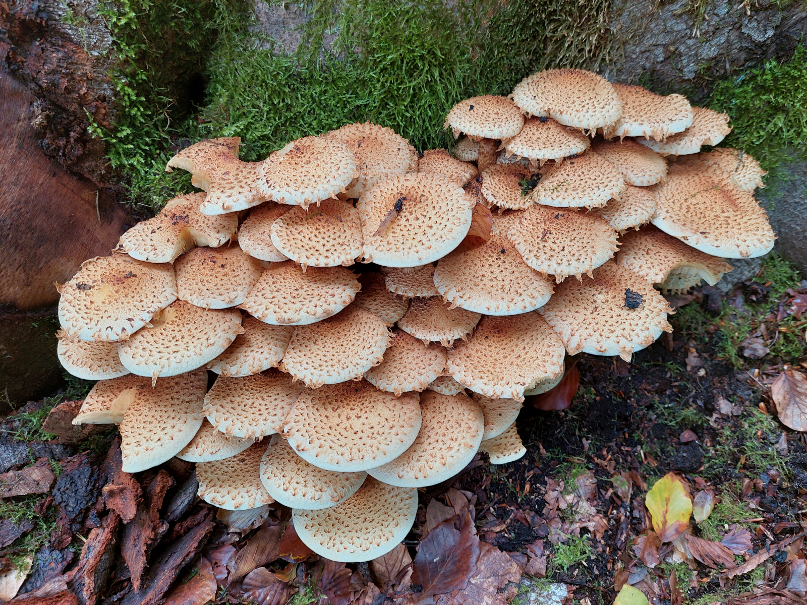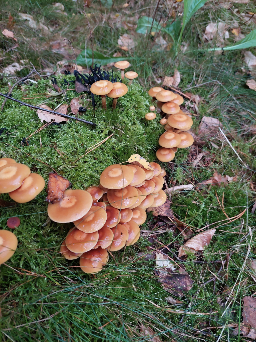 Zufällig habe ich, als die Ernte hier begann, auch noch gleichzeitig eine neue Stelle mit Stockschwämmchen im Wald gefunden. Die Pilze wachsen da leicht zeitversetzt an benachbarten Stellen. Ich war schon 2 mal da, aber es kommen immer noch ein paar nach.