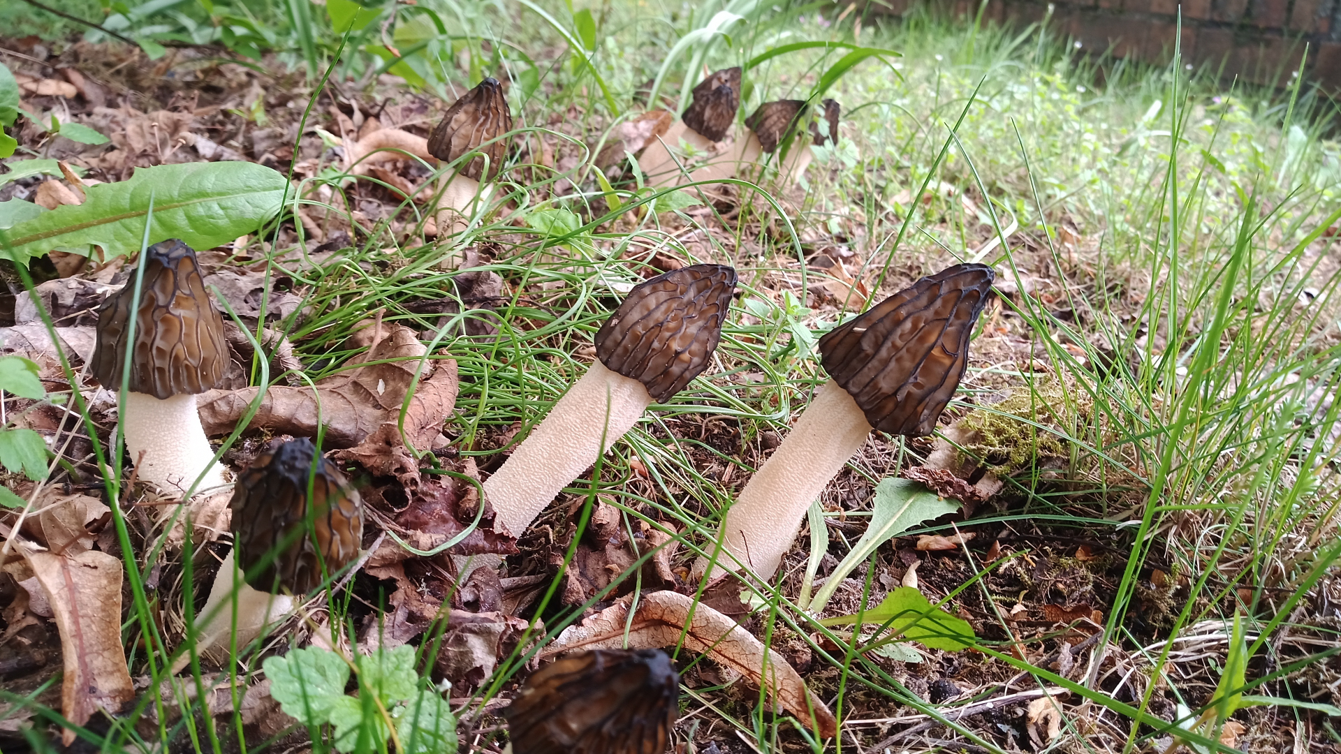 Heute sagte mir meine Frau, ich solle mal im Garten an eine bestimmte Stelle gehen, da stünden Morcheln auf dem Weg.