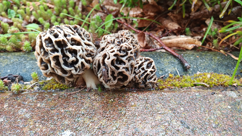 Heute sagte mir meine Frau, ich solle mal im Garten an eine bestimmte Stelle gehen, da stünden Morcheln auf dem Weg.
