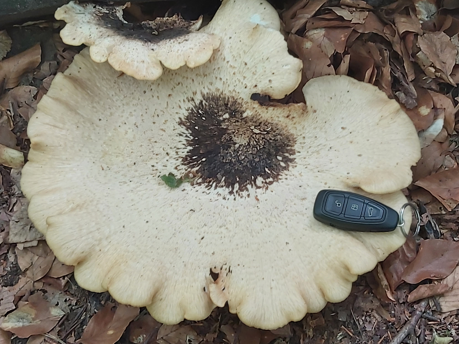 Hier im Garten wuchs vor einigen Tagen wieder der erste Schub Candolls Saumpilze. Passiert jedes Jahr mehrmals, zumal da auch regelmäßig etwas Wasser hinkommt.