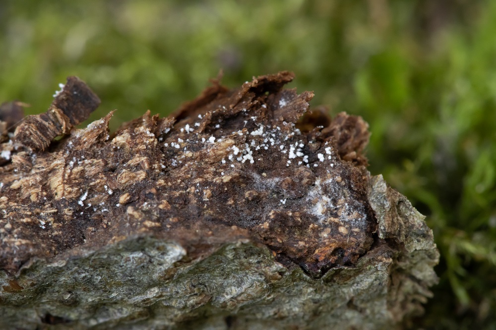 Dieses mal ist das Substrat die Unterseite der Rinde einer (noch) lebende Buche.