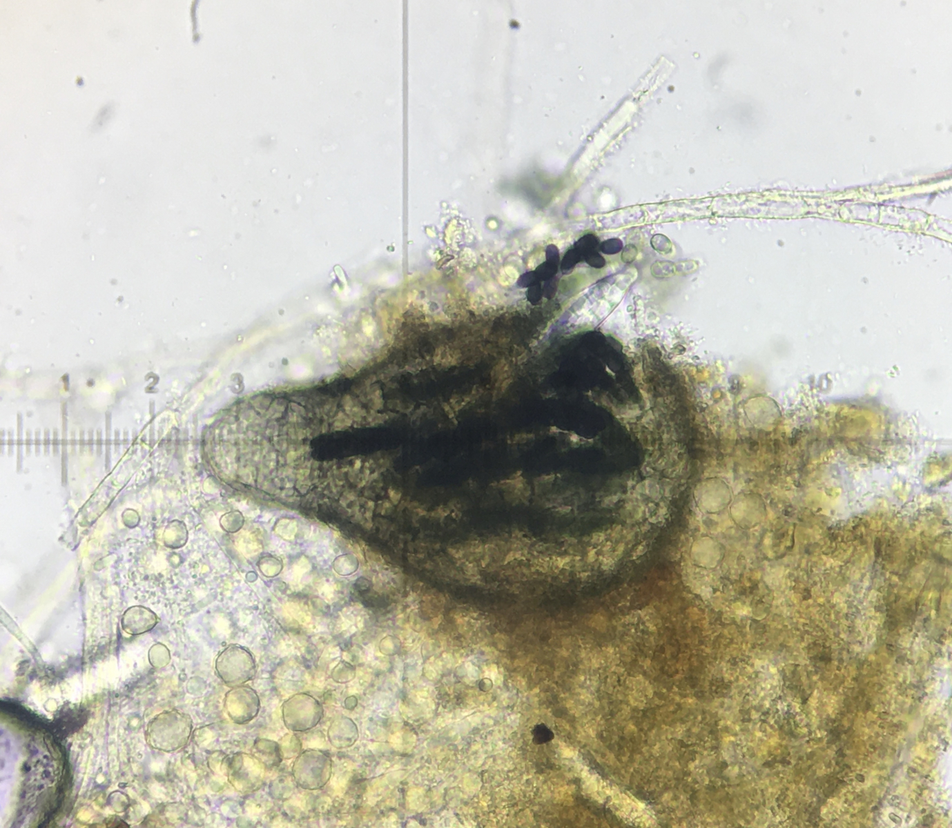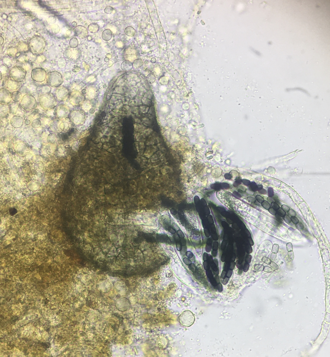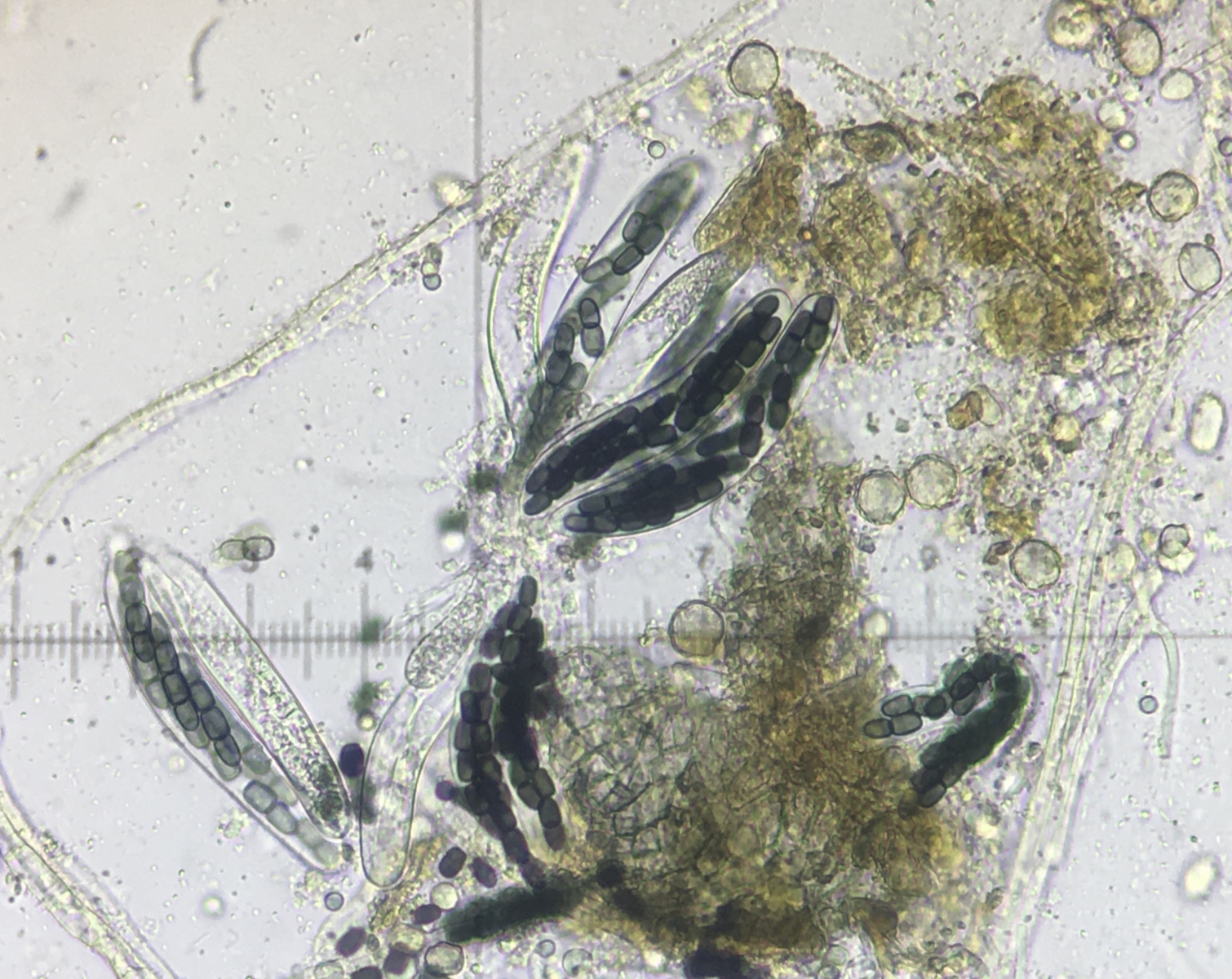 Dafür würde auch das typische Zerfallen der Sporen in zwei Hälften sprechen, wie auf Bild 4 gut zu sehen ist.
