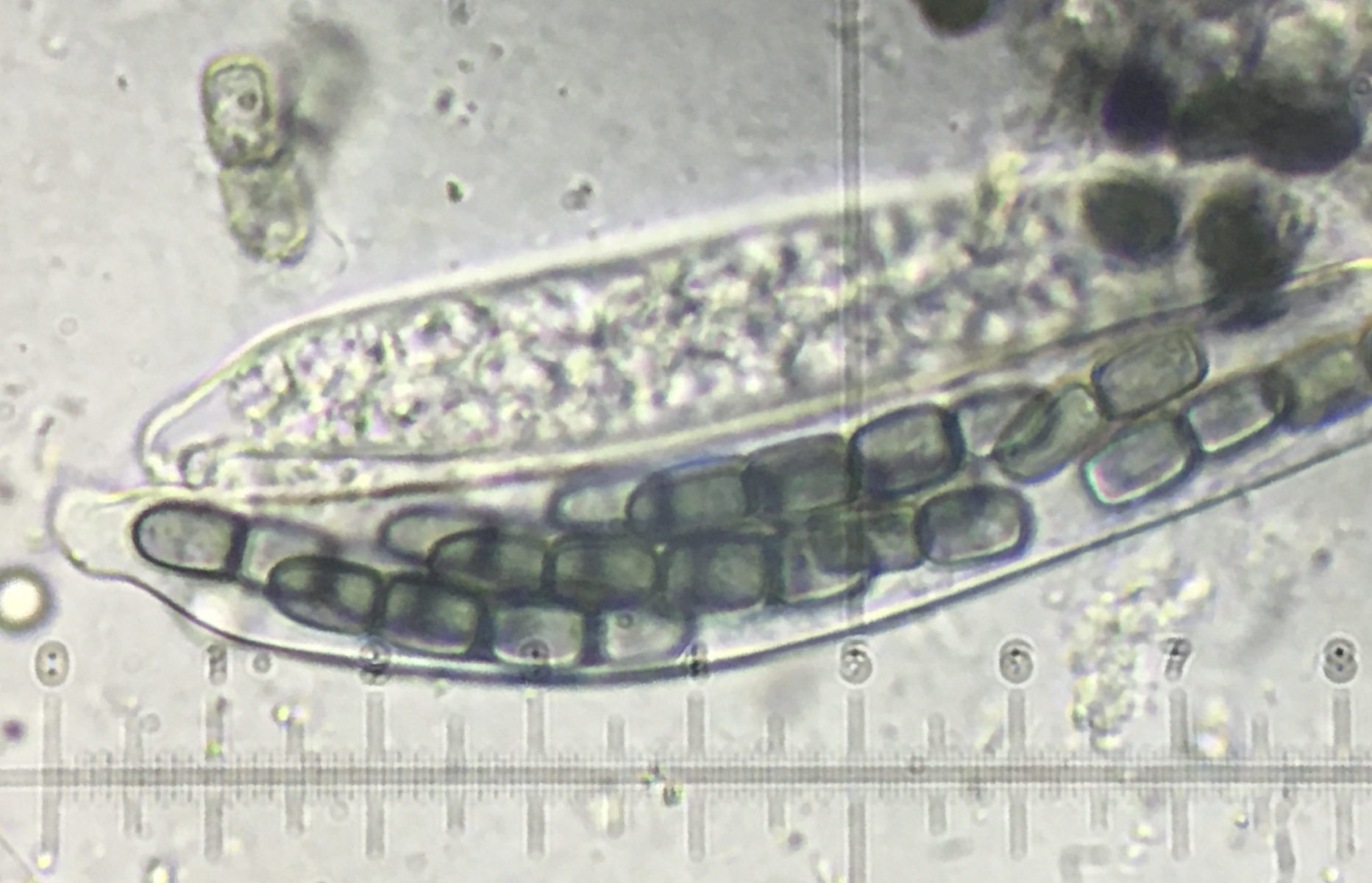 Winzige Pseudothecien (150µm), halbversunken im Substrat (Weißwedelhirschdung aus New York). Die Sporen sind so um 26µm x 4.5µm und zerbrechen sehr einfach. Die Keimspalte scheint parallel zu sein. Da paßt doch eigentlich S. dakotensis gut, oder sind diese Sporen doch zu breit?