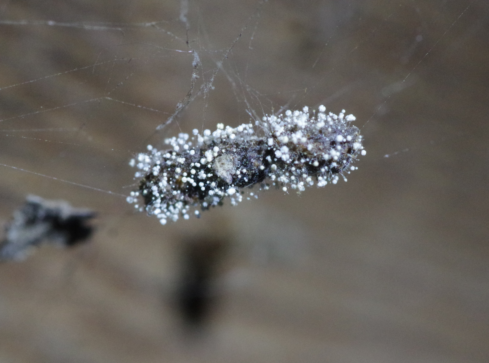 Ob das wohl ein "Vorratspäckchen" für die Spinne ist, das nicht gegessen wurde?