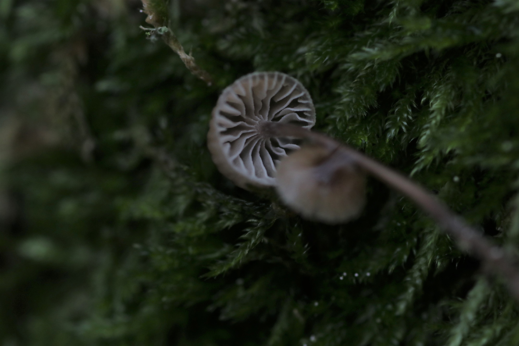 Schon wieder in der Nähe des Parkplatzes, schaute ich mir eine im unteren Bereich von Moos überbewachsene Eiche an und entdeckte unzählige kleine Helmlinge. Zwei von ihnen habe ich mitgenommen und mikroskopiert. Nunja, versucht zu mikroskopieren. Die Bilder der Lamellenschneide sind leider suboptimal geworden, man erkennt aber hoffentlich etwas.