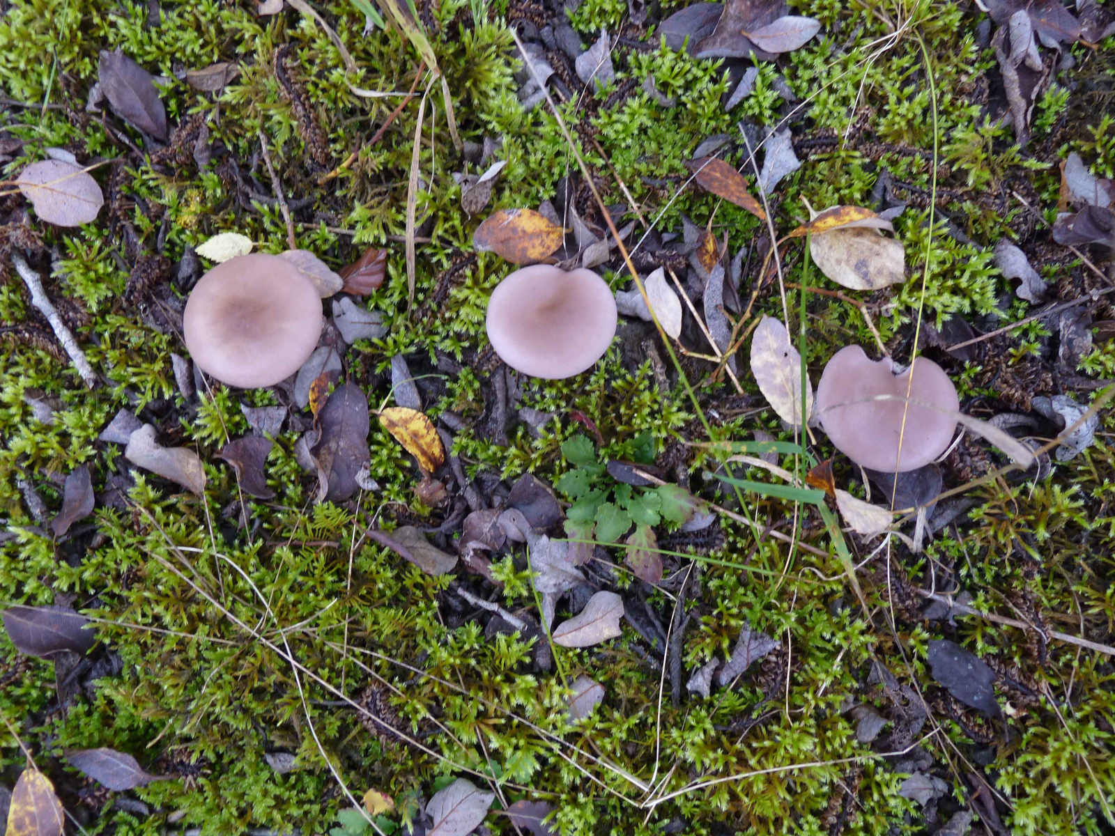 Die Pilzchen nach Hygrocybe punicea (Riesensaftling) sind Trichterlinge, aber ich habe keine Ahnung, welche Art das sein könnte.