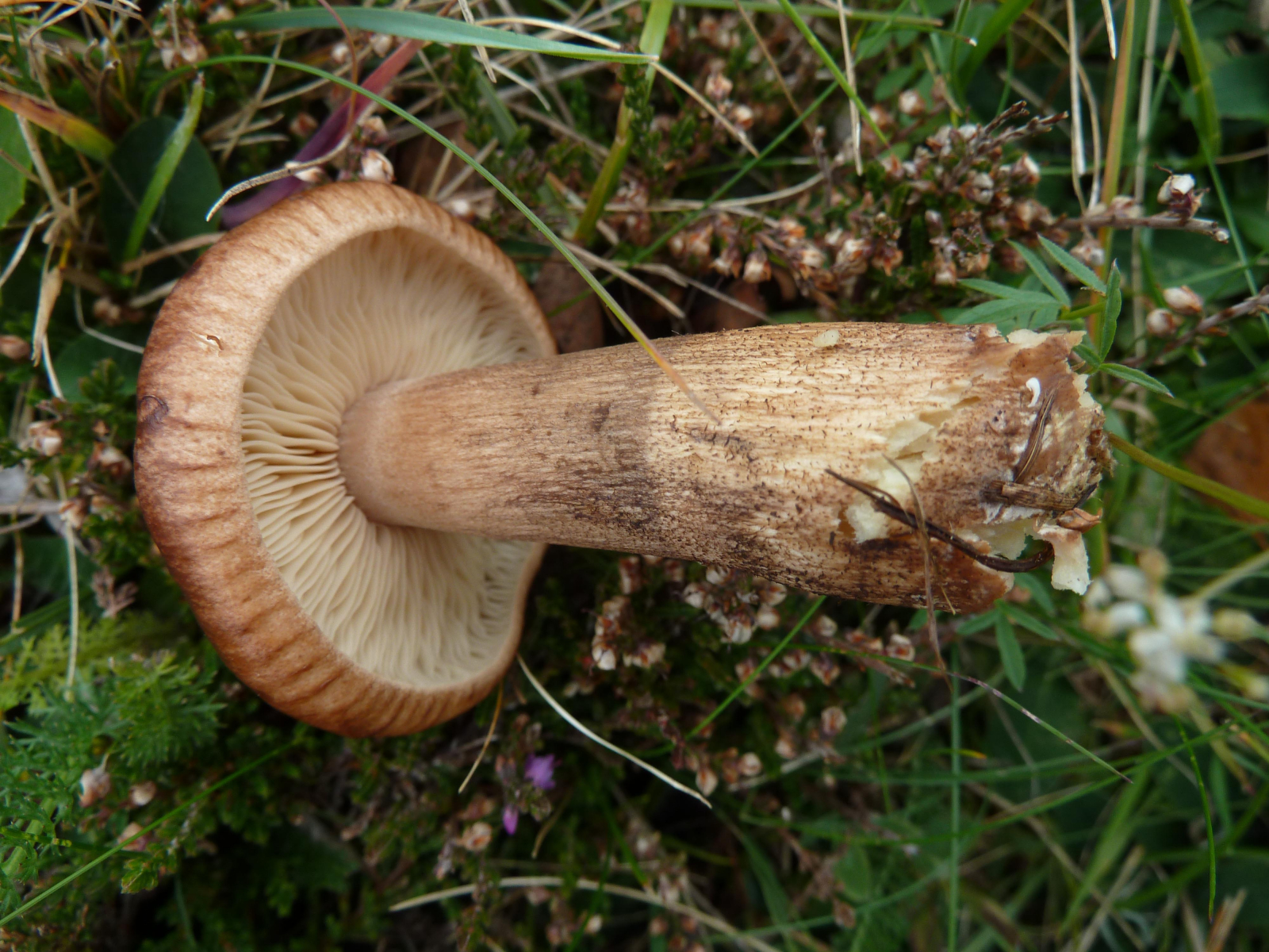 Bei dem vermeintlichen Tricholoma fulvum sieht die verletzte Stelle unten am Stiel auf meinem Bildschirm schon gelblich aus; hier waren auch eindeutig Birken die Begleiter.