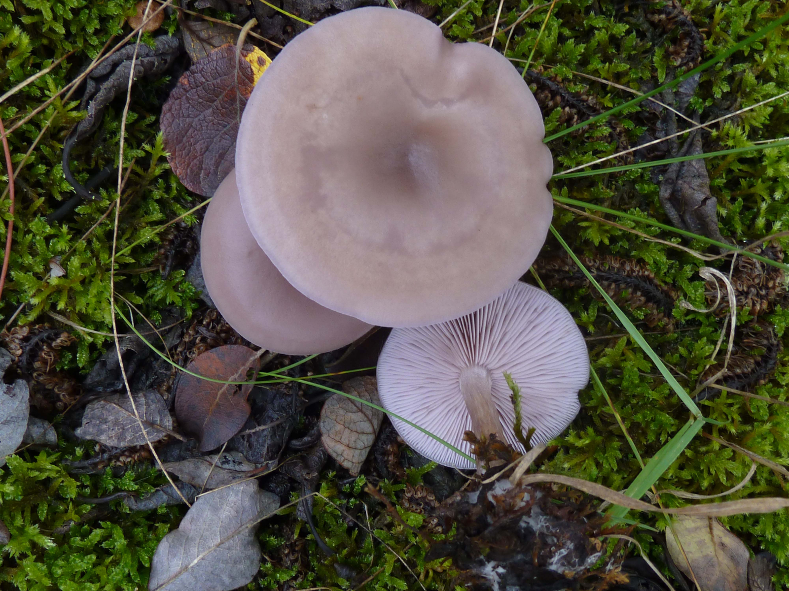 Die Pilzchen nach Hygrocybe punicea (Riesensaftling) sind Trichterlinge, aber ich habe keine Ahnung, welche Art das sein könnte.