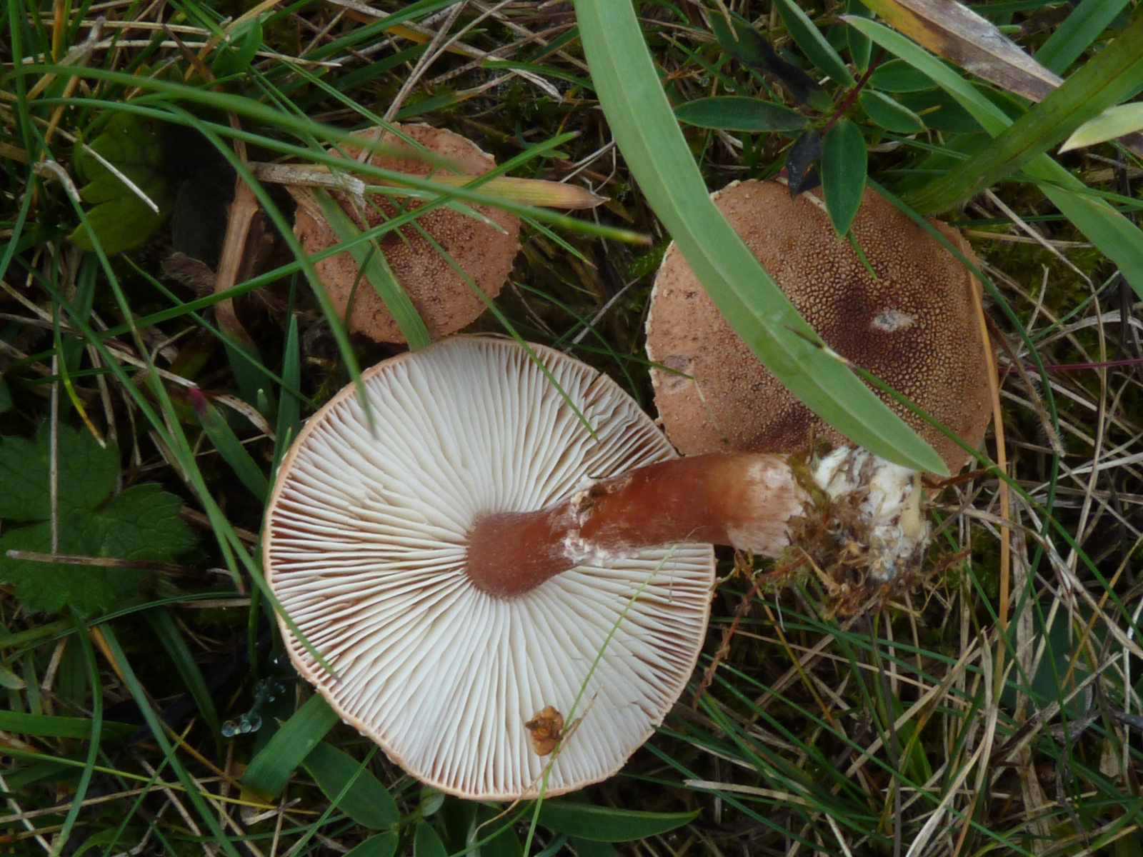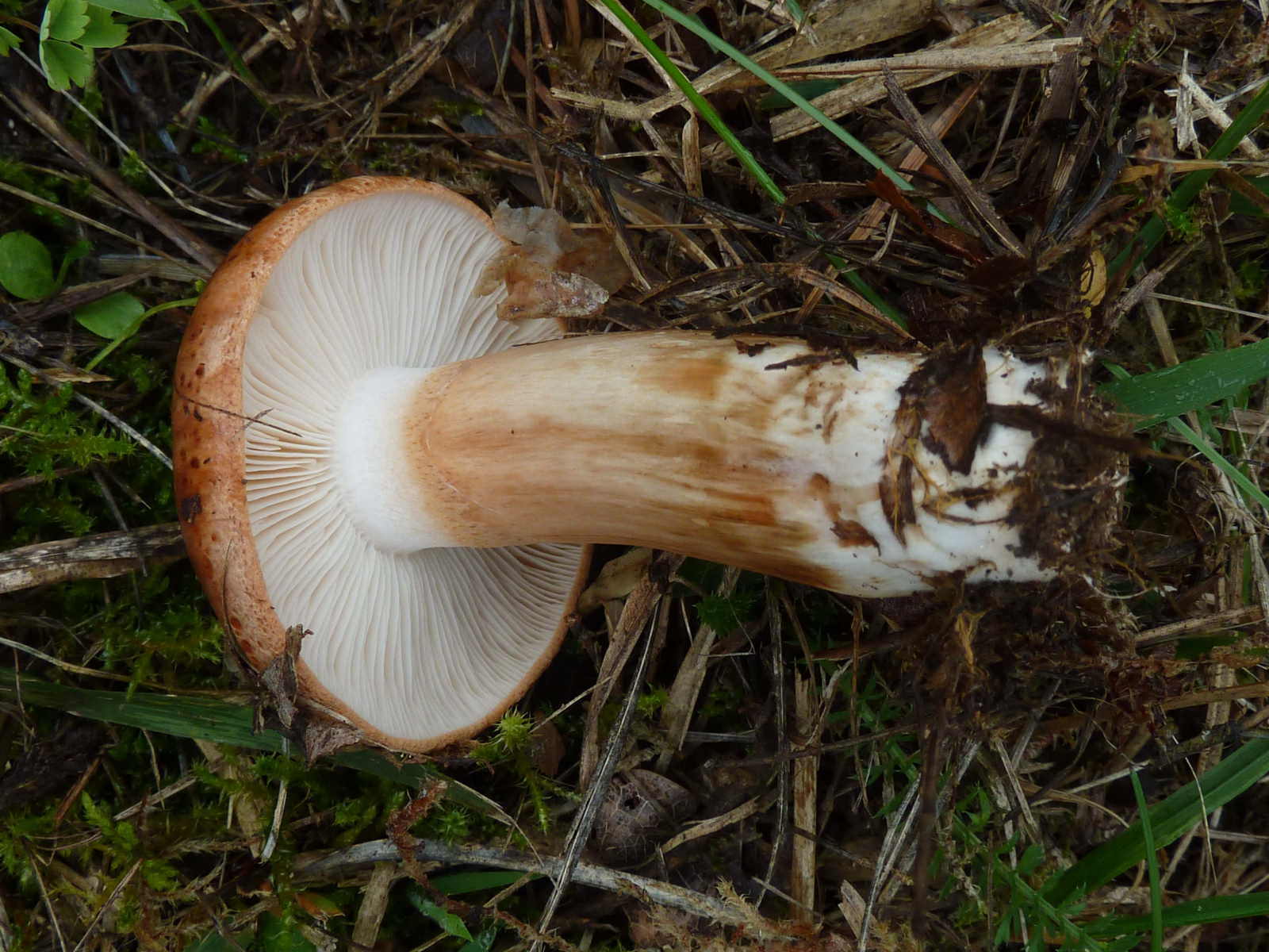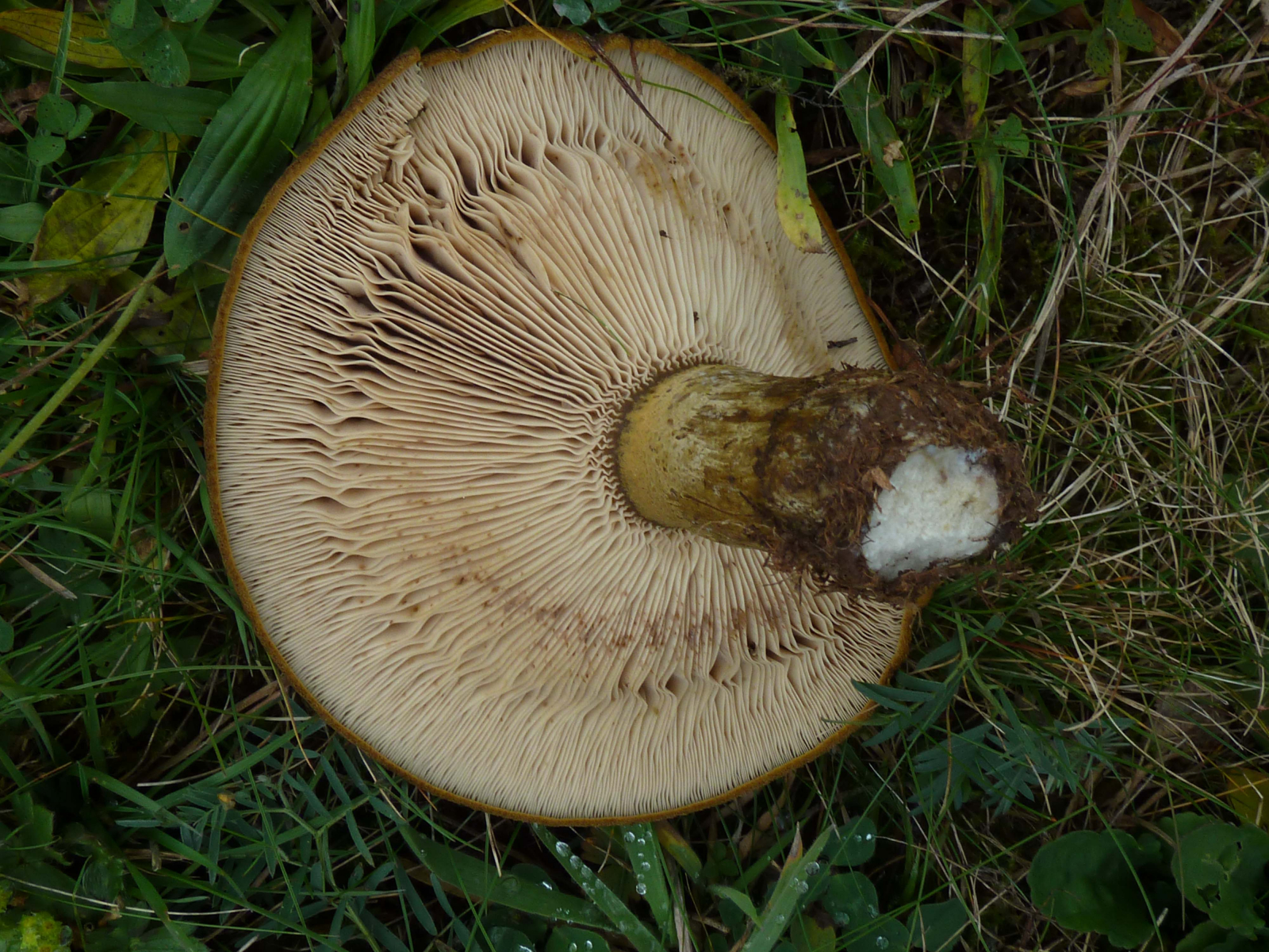 Bei dem vermeintlichen Tricholoma fulvum sieht die verletzte Stelle unten am Stiel auf meinem Bildschirm schon gelblich aus; hier waren auch eindeutig Birken die Begleiter.