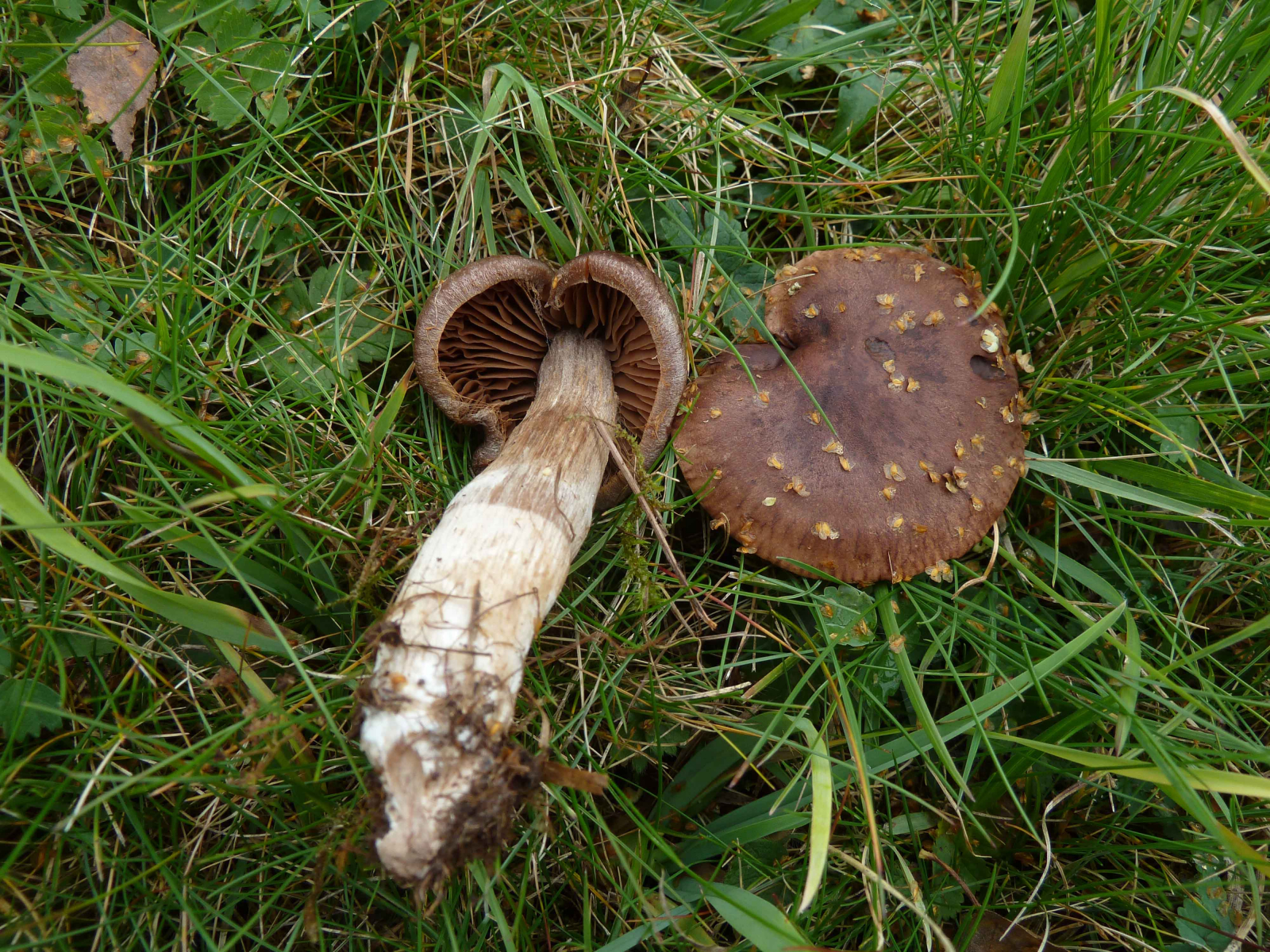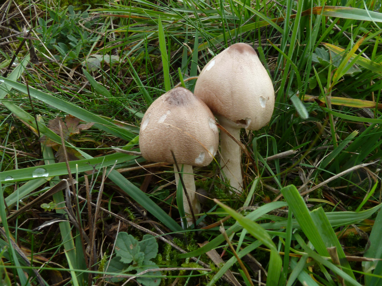 Die komischen Riesenschirmlinge erinnern mich an Macrolepiota affinis, das ist eine der "Arten" (oder vielleicht nur eine Varietät?) aus dem mastoidea - Aggregat.