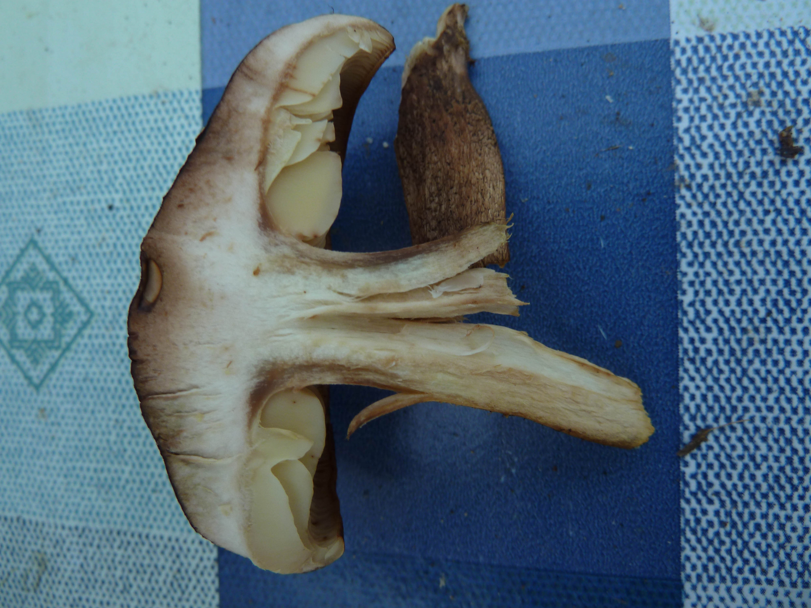 Gelb unter der Stielrinde, und sogar gelbliche Farbtöne in den Lamellen. Damit muss das wie schon von dir festgestellt Tricholoma fulvum sein.