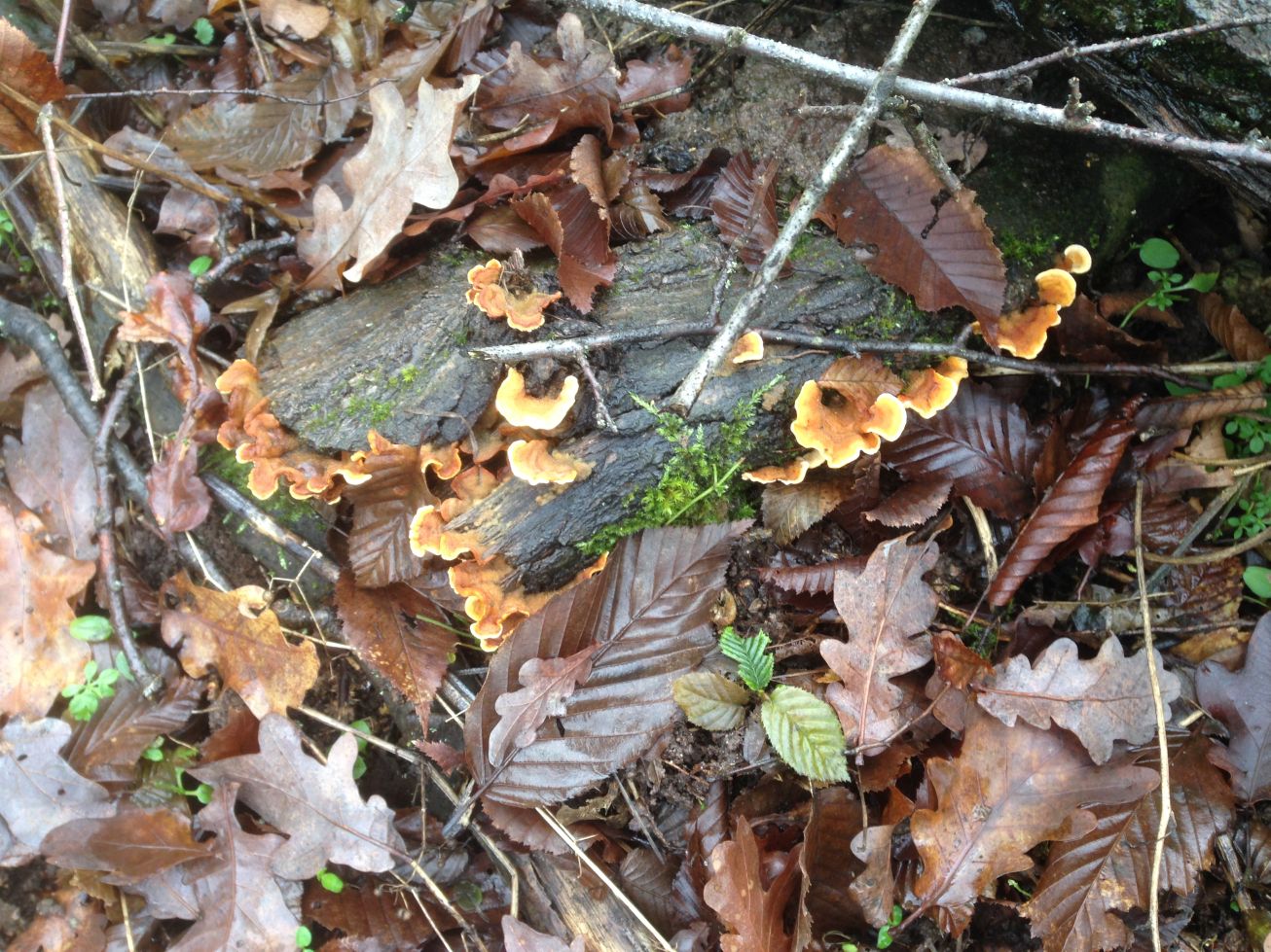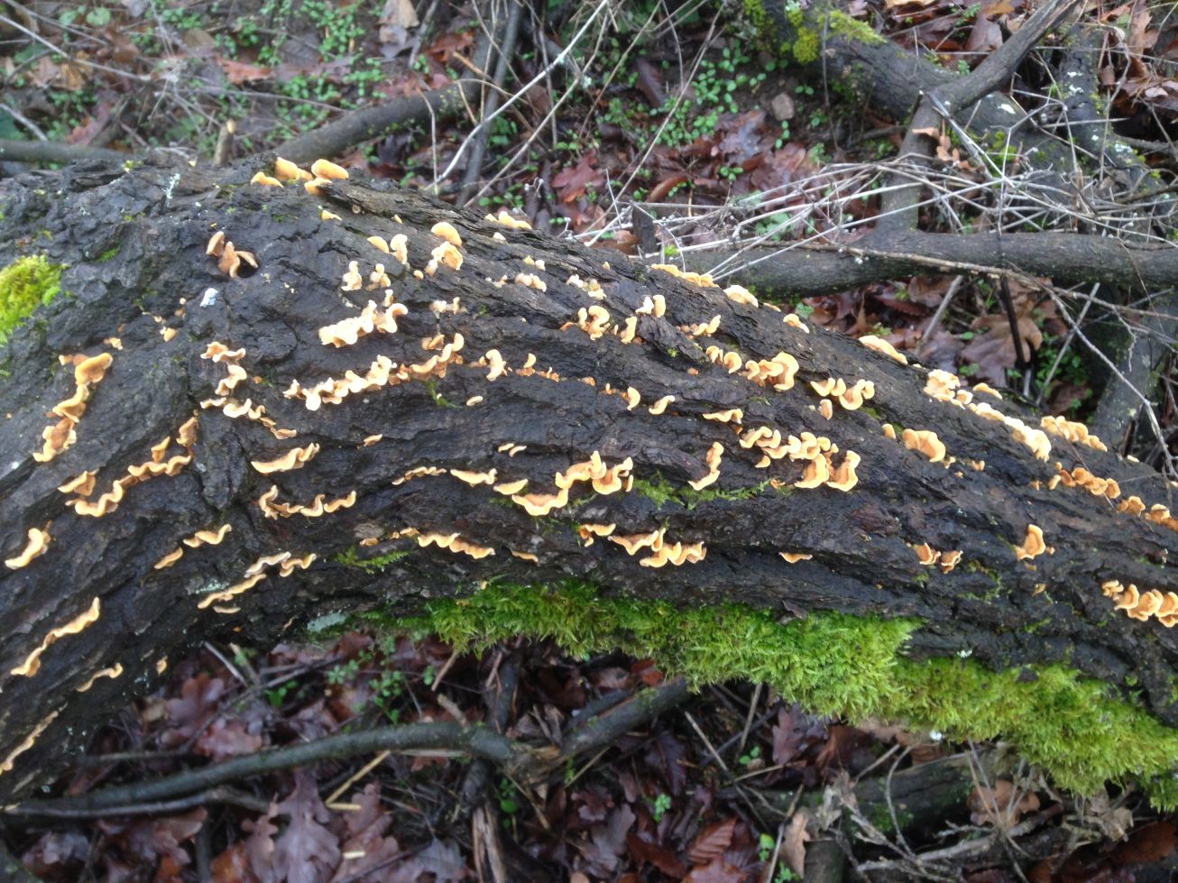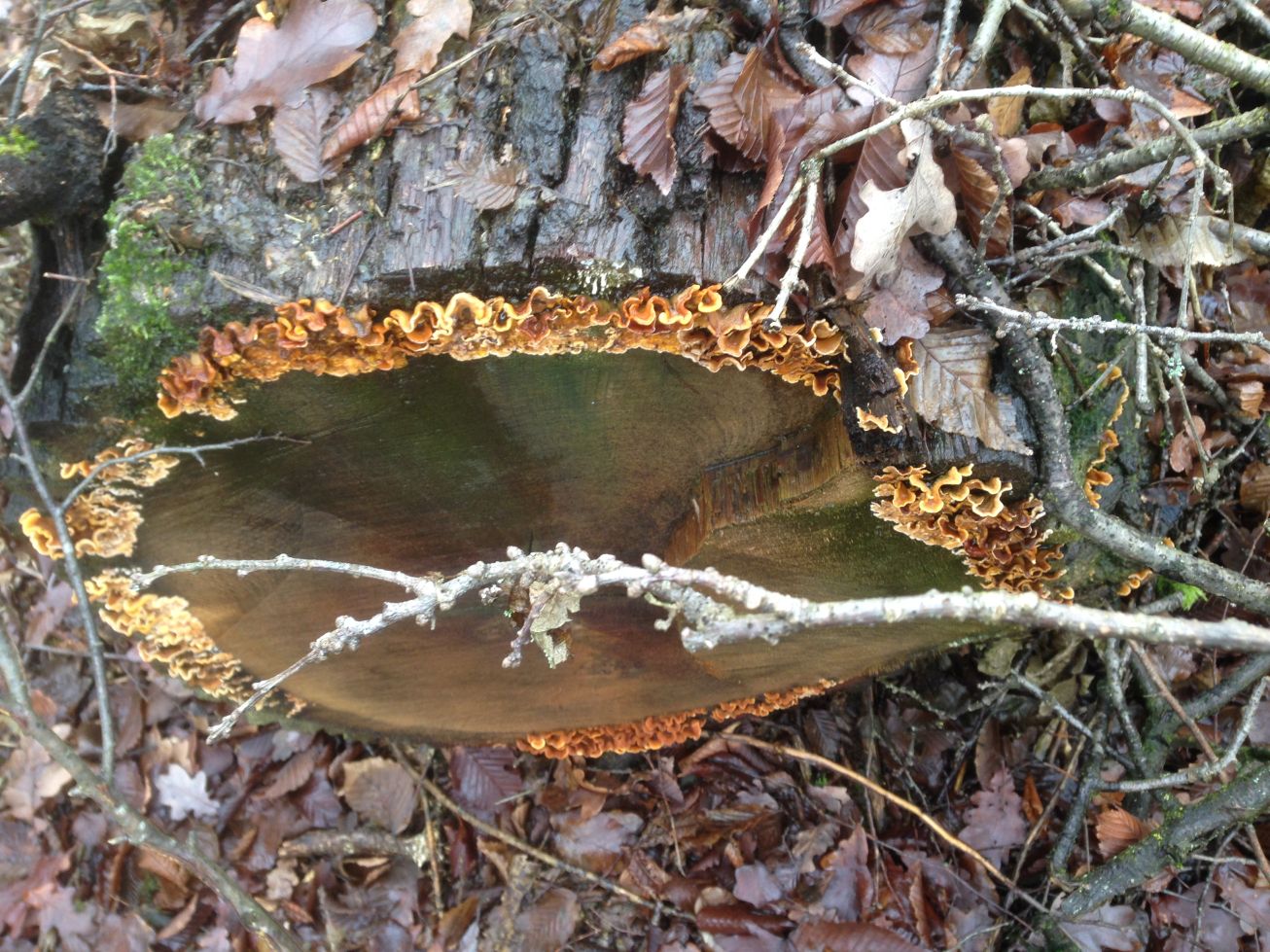 - der zweite sieht aus wie eine Tramete aber ist gelblich-orange