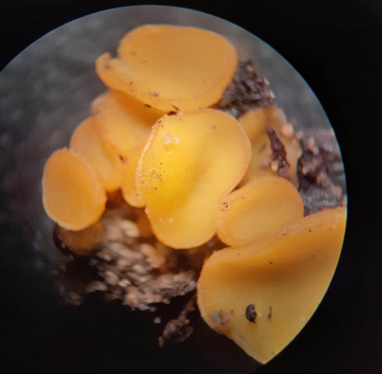 ...aber es gibt ja in der Tat einen ganzen Haufen solcher gelber Becherlinge, ohne durch die Linsen zu gucken geht vermutlich in den seltensten Fällen eine Eingrenzung...