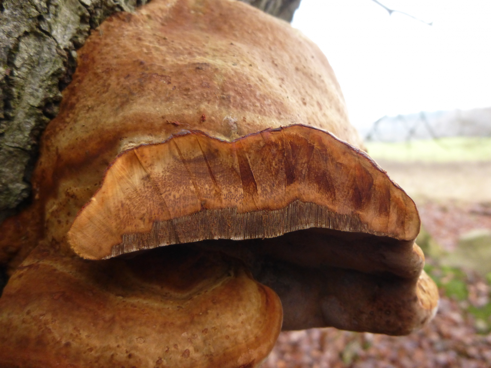 Hier denke ich an komplett frischen Zunderschwamm (Fomes formentarius)