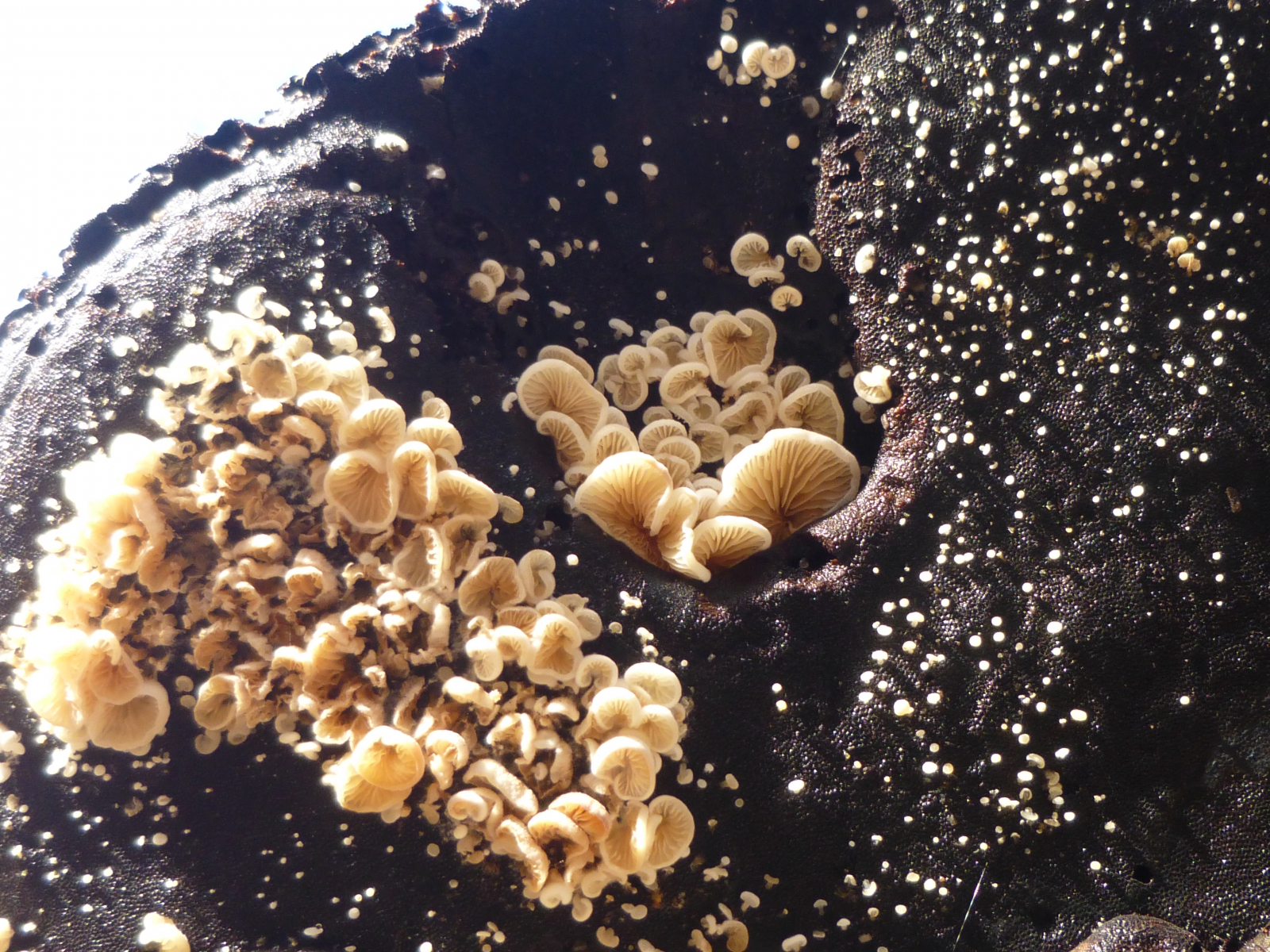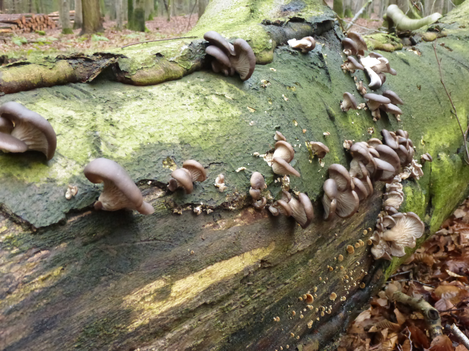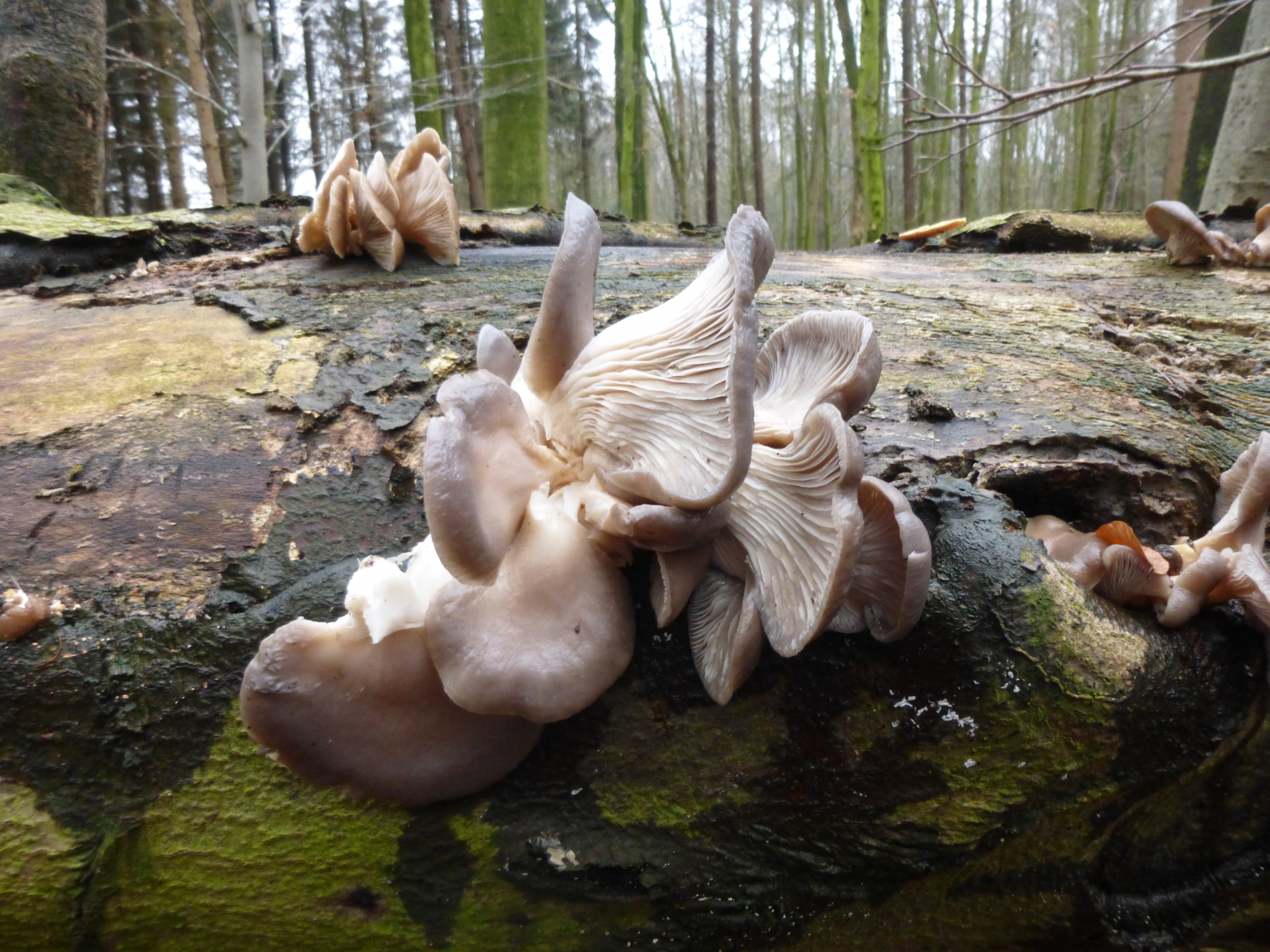 Vor kurzem waren diese großen Austernseitlinge noch in ein paar Metern Höhe - nun liegen sie verkehrt.