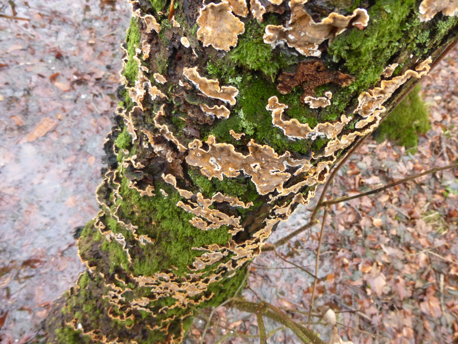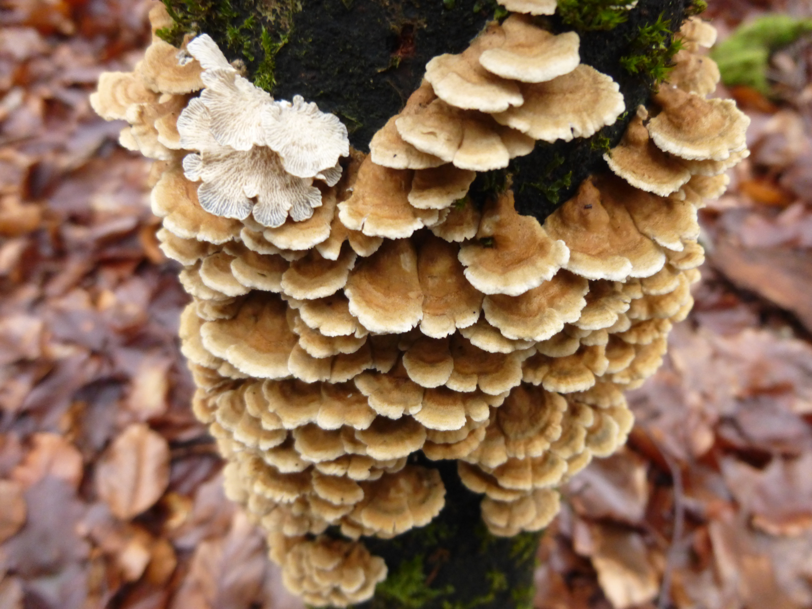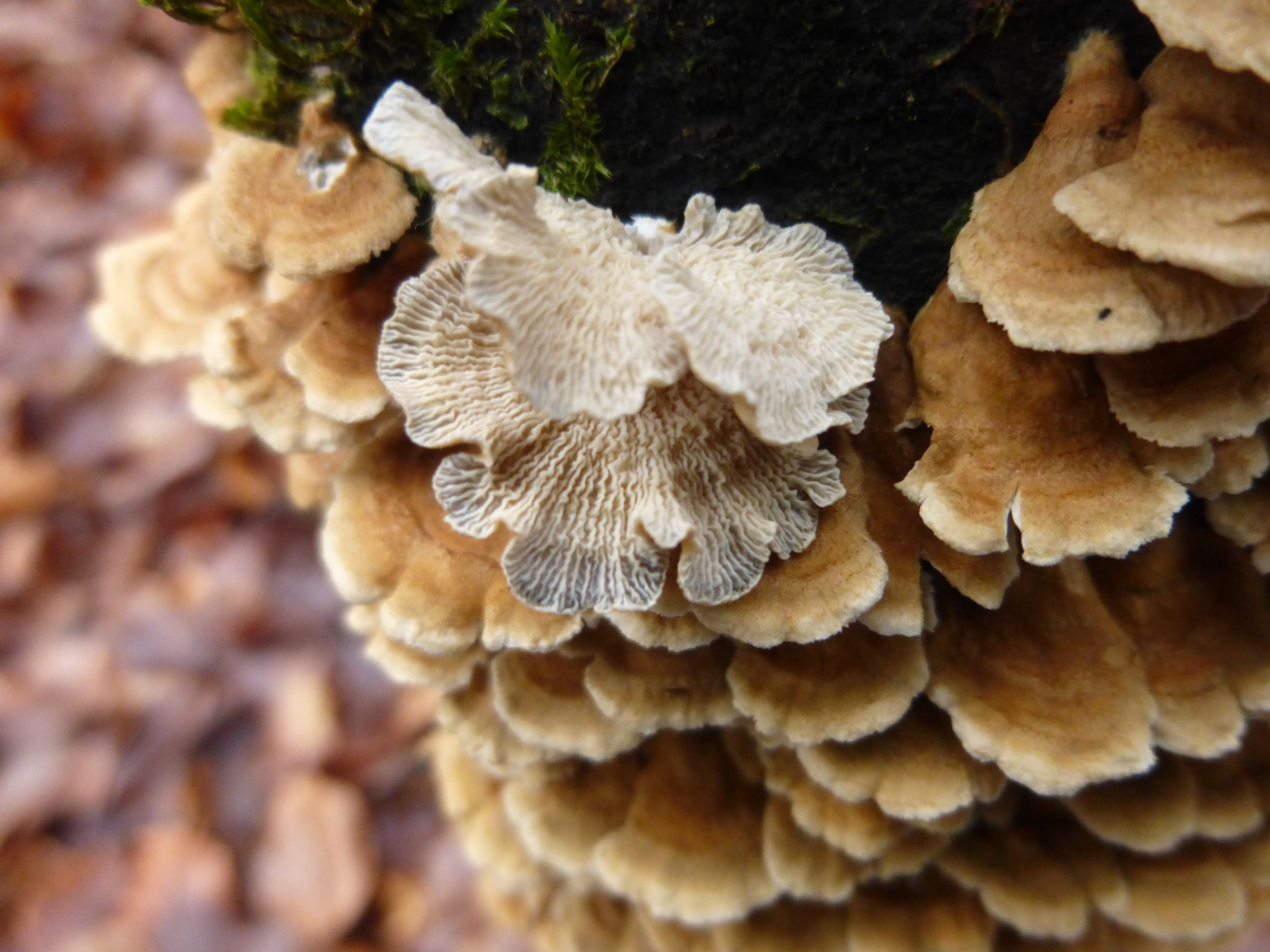 Vor kurzem waren diese großen Austernseitlinge noch in ein paar Metern Höhe - nun liegen sie verkehrt.