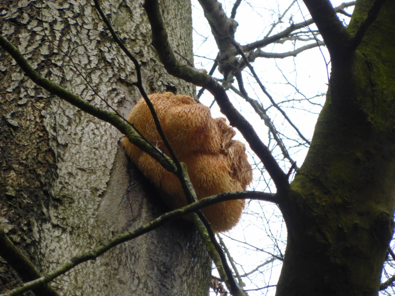 Und dann, in luftiger Höhe von 7 oder 8m an einer mächtigen Buche ein Oschi von einem Igel-Stachelbart (Hericium erinaceus)