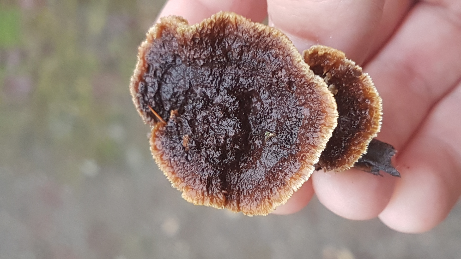 Ich dachte an den Dreieckigen Filzporling? Schnittbilder habe ich leider keines, mangels Taschenmesser.