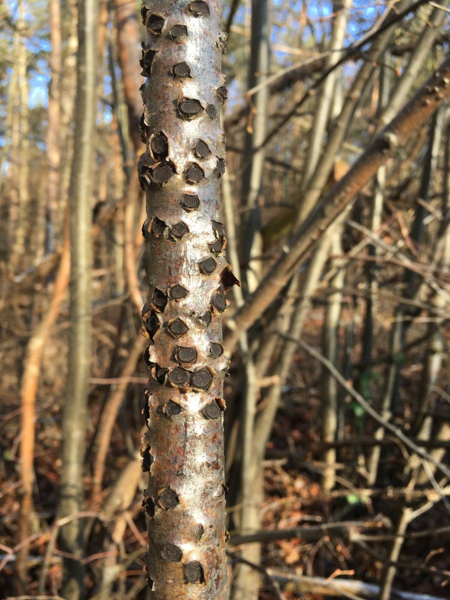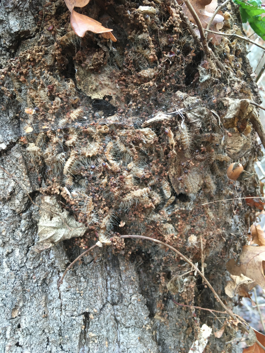 (Überbleibsel des Eichenprozessionsspinners. Leider behalten die Brennaare noch Jahre nach deren Metamorphose ihre Potenz uns böse zu ärgern)