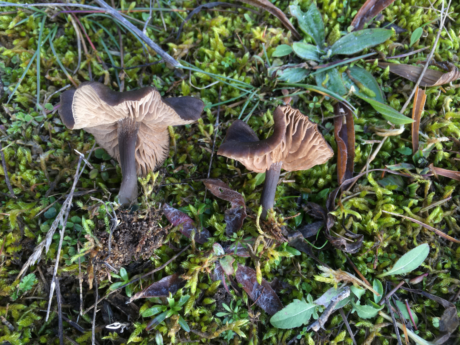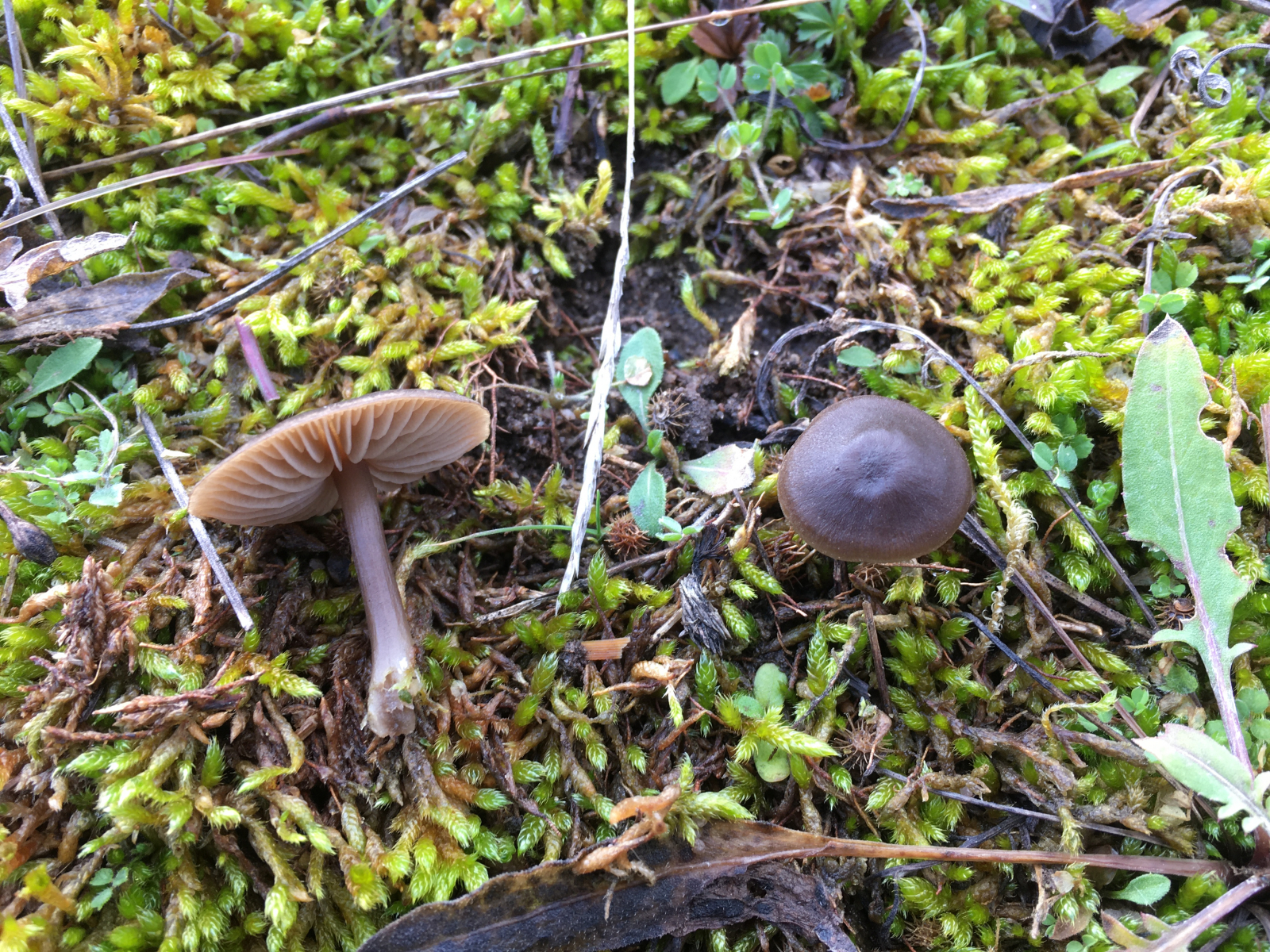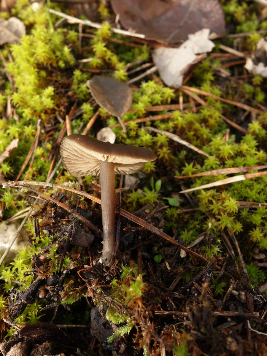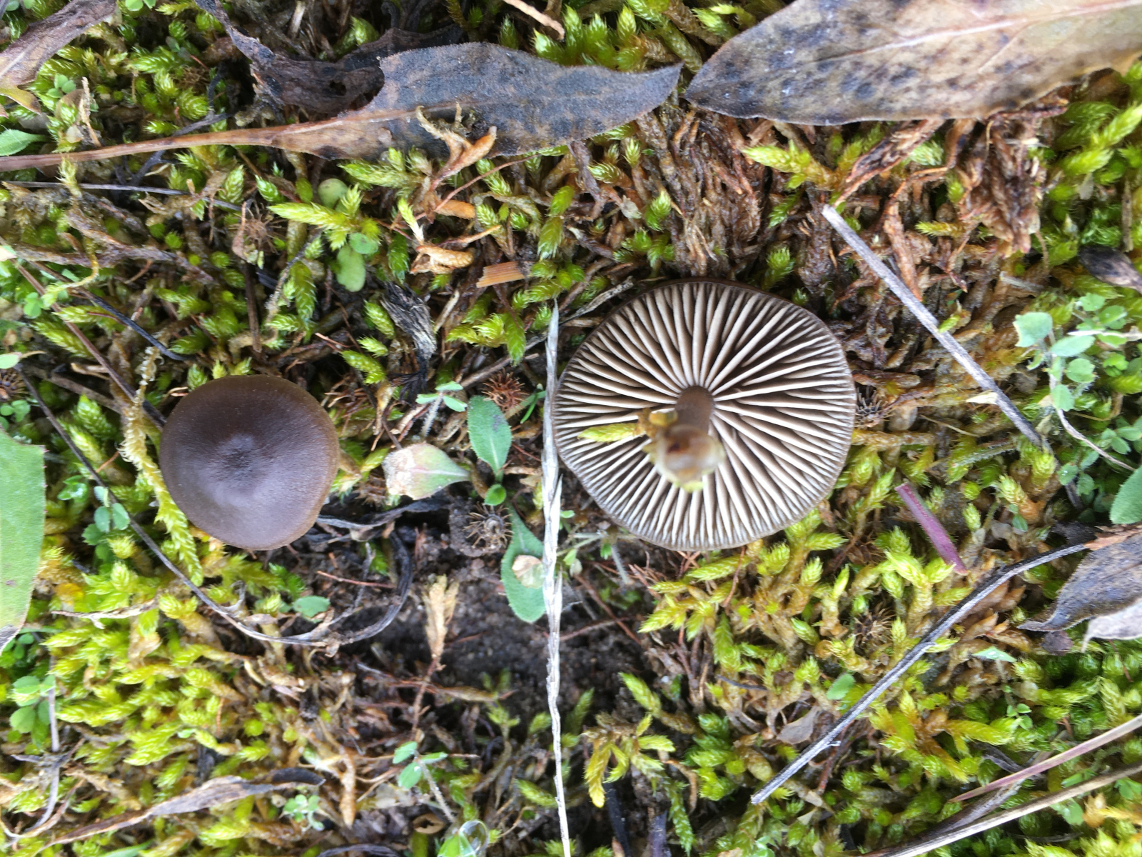 Hut dunkelbraun, etwas gräulicher matter Effekt, kaum gerieft zum Rand hin, flach gebuckelt, manche Exemplare mit zentralem "Stielbuckel". Lamellen ausgebuchtet angewachsen, beige später grau-hellbraun mit fraglcih leicht rötlichem Schimmer. Sporenpulver beige mit schwachem rosastich. Stiel braun, bei alten Exemplaren hohl, leicht faserig, weisser Basalfilz. Keinerlei Geruch bei unverletztem FK, nach zerreiben des Hutes deutlich mehlig. Auch wenn ich weiß dass eine Bestimmung nur mikroskopisch möglich ist halte ich aufgrund der passenden makroskpischen Merkmale Entoloma cf sericeum zumindest für die kleinen runden Exemplare für nicht unwahrscheinlich.