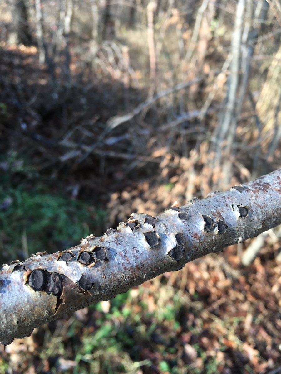 Eckenscheibchen (Diatrype cf disciformis) eher Biscogniauxia marginata (Danke Beli) auf Buchenstämmchen