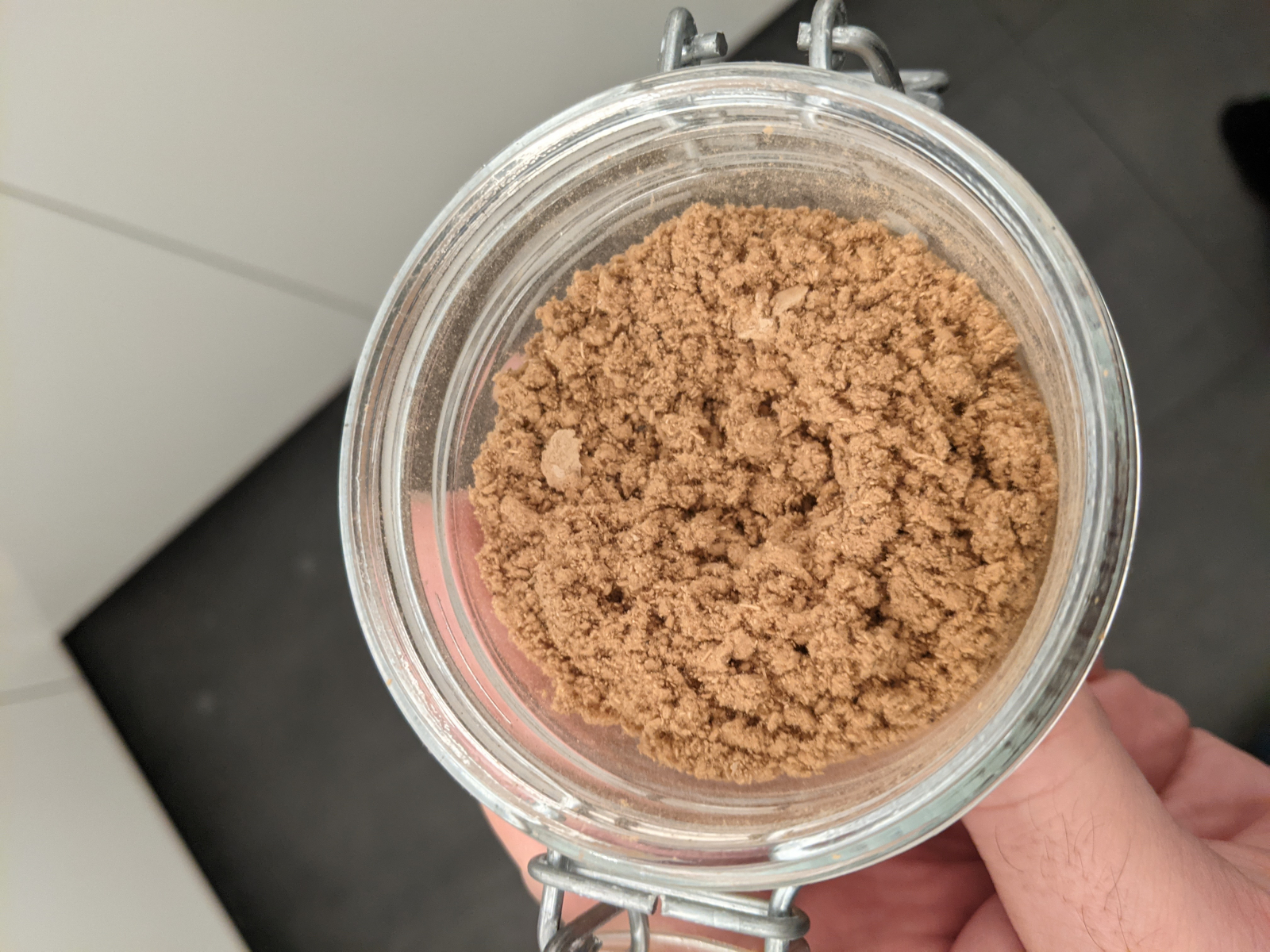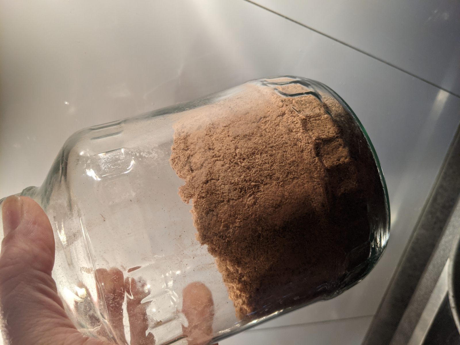 Ob noch Feuchtigkeit im Pulver ist, kannst du leicht prüfen indem du das geschlossene Glas für eine Weile auf die Heizung stellst. Dann siehst du, ob sich innen Feuchtigkeit niederschlägt. Falls ja, das Glas öffnen und weiter trocknen lassen.