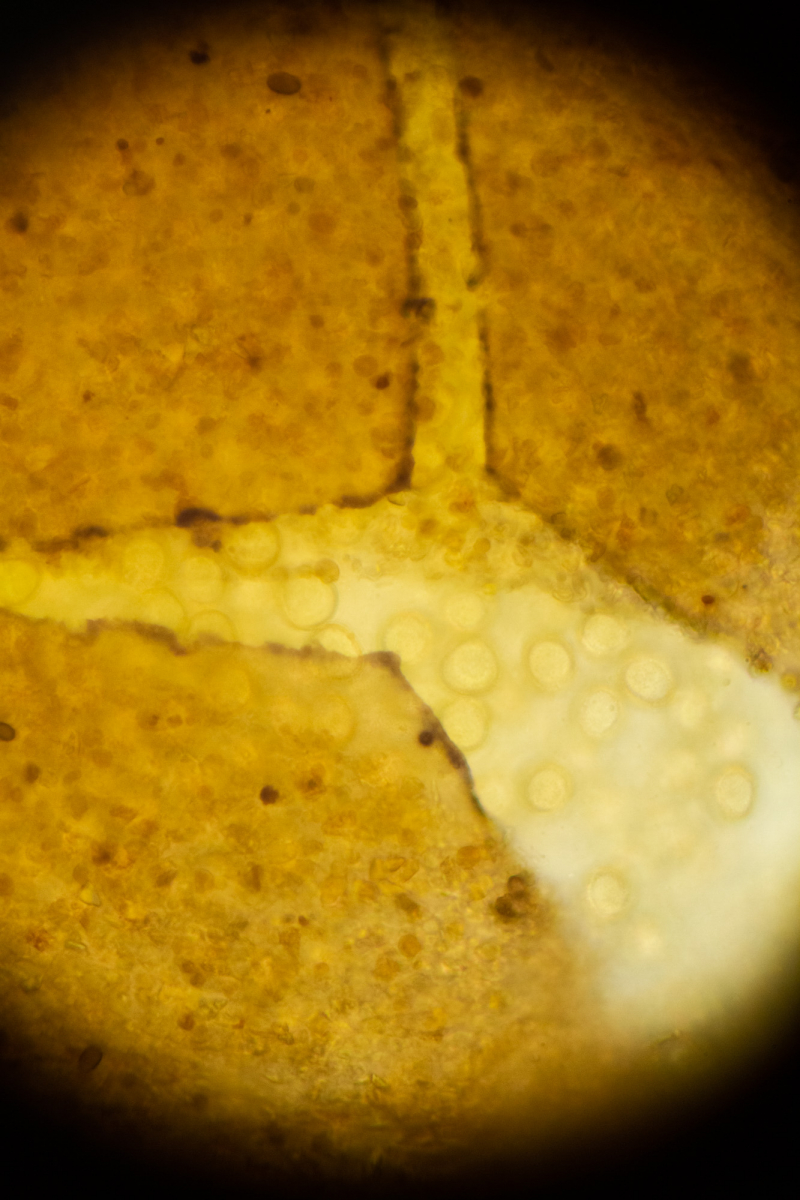 Die Sporen sind etwa 10 µm groß und haben Warzen.