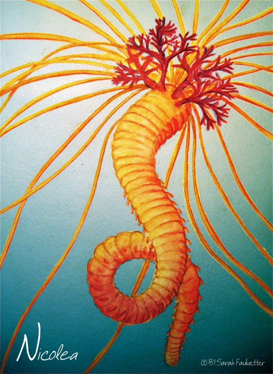 Weil die Formen und Farben so faszinierend sind, habe ich vor zwei Jahren mal die Aquarellfarben rausgekramt und diese Vielfalt in einem Wurm-Alphabet festgehalten: für jeden Buchstaben habe ich eine Gattung rausgesucht und gemalt (alles in Aquarell aber Hintergrund und Schrift sind digital hinzugefügt).
