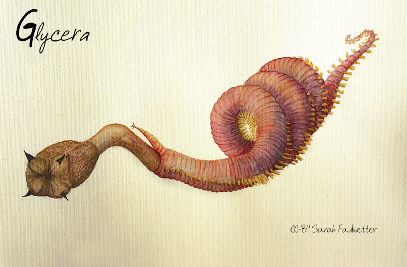 Die Organismen, die da so leben sind z.B. Muscheln, Schnecken, Krebse, Krabben, Anemonen, Seesterne etc. Den größten Anteil bilden aber eigentlich fast immer die Polychäten - Vielborsterwürmer. Verwandt mit den deutlich bekannteren Regenwürmern (das sind Oligochäten - Wenigborster). Beide Gruppen zeichnen sich dadurch aus, dass sie einen in Segmente unterteilten Körper haben (heißen auch Ringelwürmer). Polychäten haben an jedem Segment ein mehr oder weniger dichtes Bündel an Borsten, Wenigborster oft nur ein bis drei Härchen. Polychäten sind aber deutlich variabler in Form und Funktion - es gibt sehr mobile, große räuberische Würmer, welche die in einer festen Röhre wohnen und mit einer Tentakelkrone das Wasser nach Futter filtern, wieder andere - z.B. die Wattwürmer - leben im Sediment und bauen dort Wohngänge, die wiederum Sauerstoff in tiefere Schichten des Sediments bringen. Einige sind auch komplett planktonisch, leben also nur im Freiwasser der Ozeane und haben mit dem Meeresboden nichts zu tun.