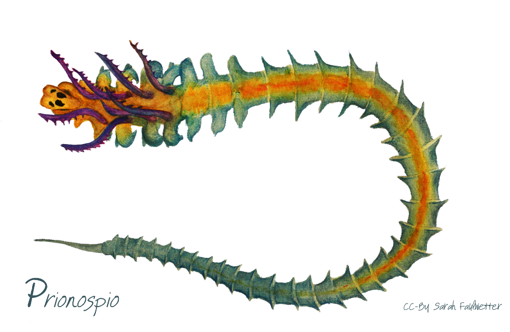Die Organismen, die da so leben sind z.B. Muscheln, Schnecken, Krebse, Krabben, Anemonen, Seesterne etc. Den größten Anteil bilden aber eigentlich fast immer die Polychäten - Vielborsterwürmer. Verwandt mit den deutlich bekannteren Regenwürmern (das sind Oligochäten - Wenigborster). Beide Gruppen zeichnen sich dadurch aus, dass sie einen in Segmente unterteilten Körper haben (heißen auch Ringelwürmer). Polychäten haben an jedem Segment ein mehr oder weniger dichtes Bündel an Borsten, Wenigborster oft nur ein bis drei Härchen. Polychäten sind aber deutlich variabler in Form und Funktion - es gibt sehr mobile, große räuberische Würmer, welche die in einer festen Röhre wohnen und mit einer Tentakelkrone das Wasser nach Futter filtern, wieder andere - z.B. die Wattwürmer - leben im Sediment und bauen dort Wohngänge, die wiederum Sauerstoff in tiefere Schichten des Sediments bringen. Einige sind auch komplett planktonisch, leben also nur im Freiwasser der Ozeane und haben mit dem Meeresboden nichts zu tun.