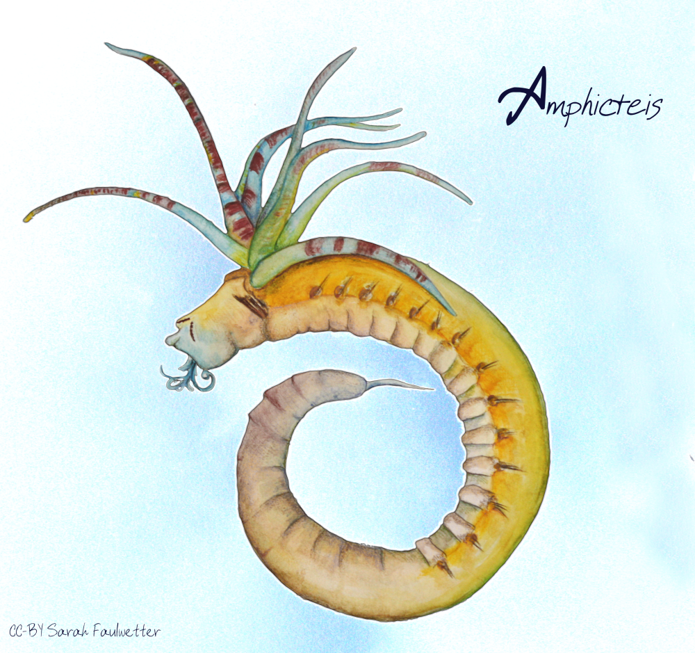Die Organismen, die da so leben sind z.B. Muscheln, Schnecken, Krebse, Krabben, Anemonen, Seesterne etc. Den größten Anteil bilden aber eigentlich fast immer die Polychäten - Vielborsterwürmer. Verwandt mit den deutlich bekannteren Regenwürmern (das sind Oligochäten - Wenigborster). Beide Gruppen zeichnen sich dadurch aus, dass sie einen in Segmente unterteilten Körper haben (heißen auch Ringelwürmer). Polychäten haben an jedem Segment ein mehr oder weniger dichtes Bündel an Borsten, Wenigborster oft nur ein bis drei Härchen. Polychäten sind aber deutlich variabler in Form und Funktion - es gibt sehr mobile, große räuberische Würmer, welche die in einer festen Röhre wohnen und mit einer Tentakelkrone das Wasser nach Futter filtern, wieder andere - z.B. die Wattwürmer - leben im Sediment und bauen dort Wohngänge, die wiederum Sauerstoff in tiefere Schichten des Sediments bringen. Einige sind auch komplett planktonisch, leben also nur im Freiwasser der Ozeane und haben mit dem Meeresboden nichts zu tun.