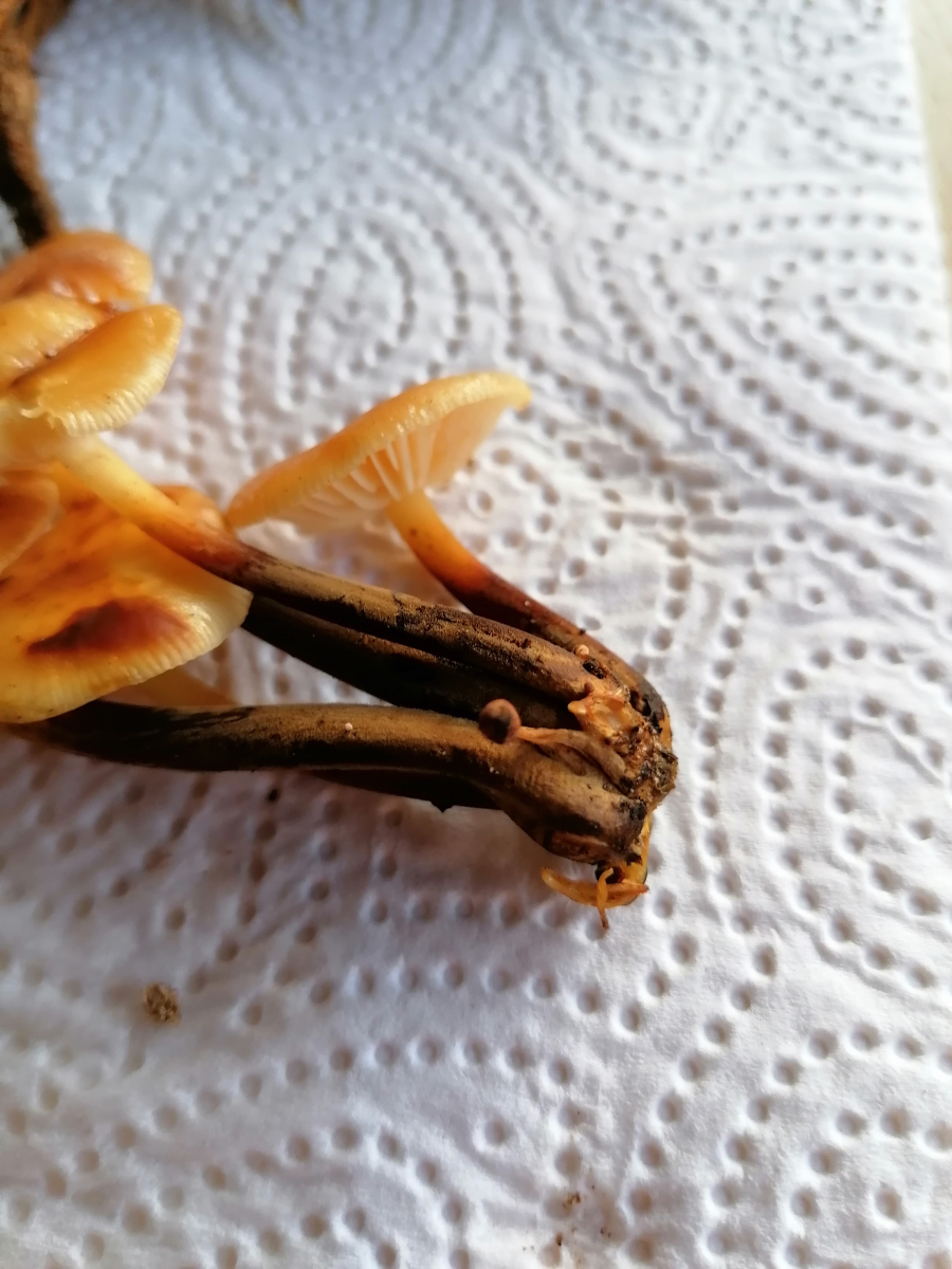 Hallo liebe Pikzfreunde, ich habe heute auf der Suche nach Samtfußrüblinge einen Pilz mit sehr wolligem Fuß gefunden, direkt neben einer Samtfußrüblingskolonie. Auch mit dem Kosmos Pilzführer konnte ich nicht wirklich viel finden, vielleicht weiß ja einer von euch bescheid. Zudem nochmal ein Bild von meinen Samtfüßen, man kann ja als Anfänger nie sicher genug sein. Außerdem sahen alle anderen Samtfüßen die letzten Male deutlich knallige aus, vielleicht schon zu alt oder wegen dem Frost? Ich habe es auch nicht hingekriegt die Bilder vernünftig hochzuladen, die ersten zwei sind der unidentifizierte, dann 2x Samtfuß, dann nochmal unbekannt. Vielen Danke euch!