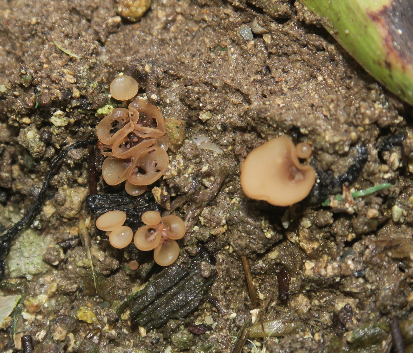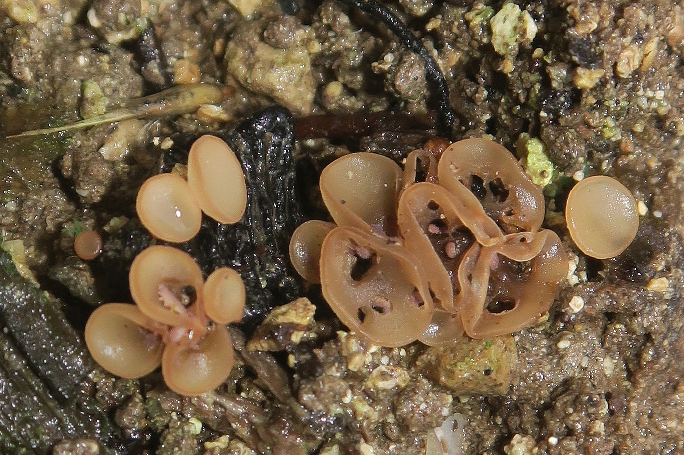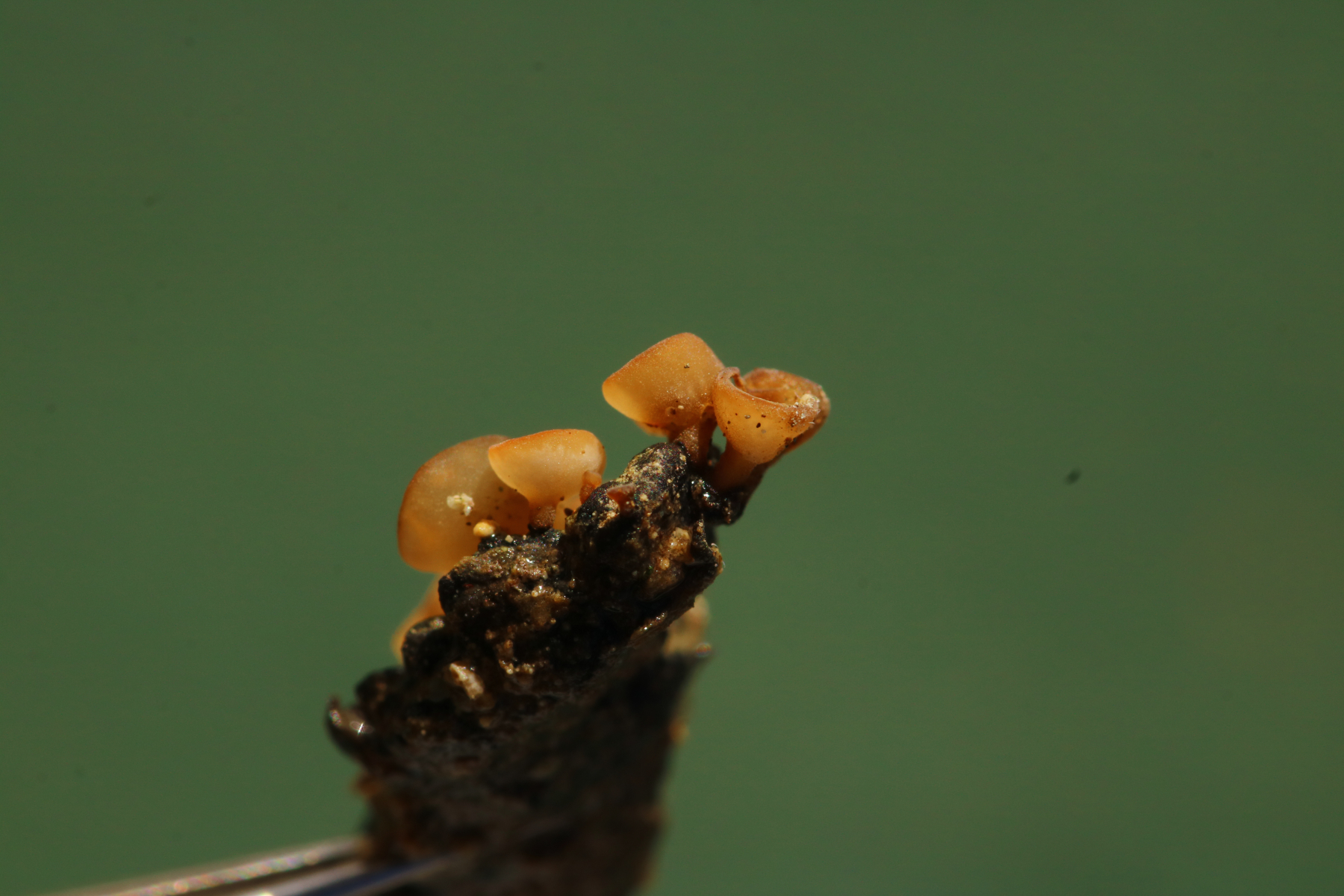 Here in Gozo (Central Mediterranean region) I have found a clump of small cupulate and shortly stipitate ascocarps growing on burned wood in damp silty soil. Some characteristics: