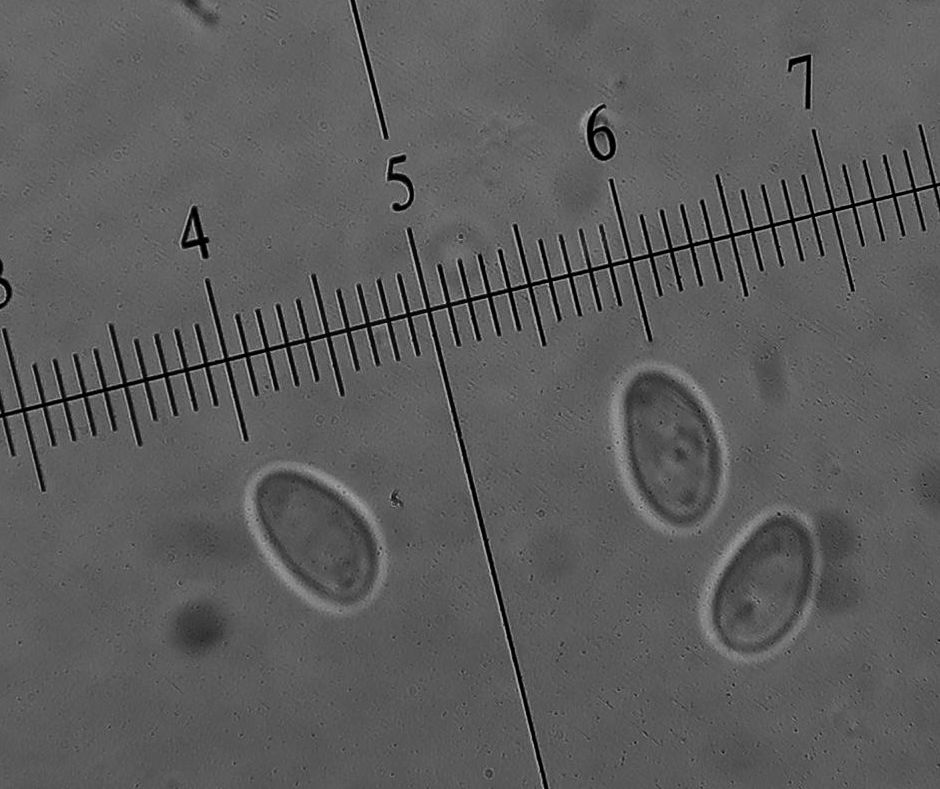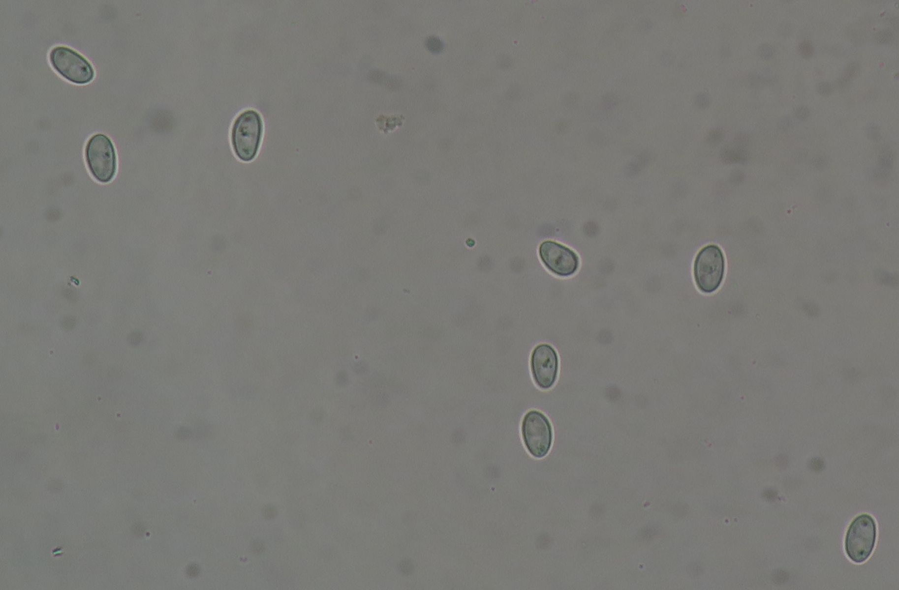 Sporesnot perfectly symmetrical, bit grainy, two or few dar granules