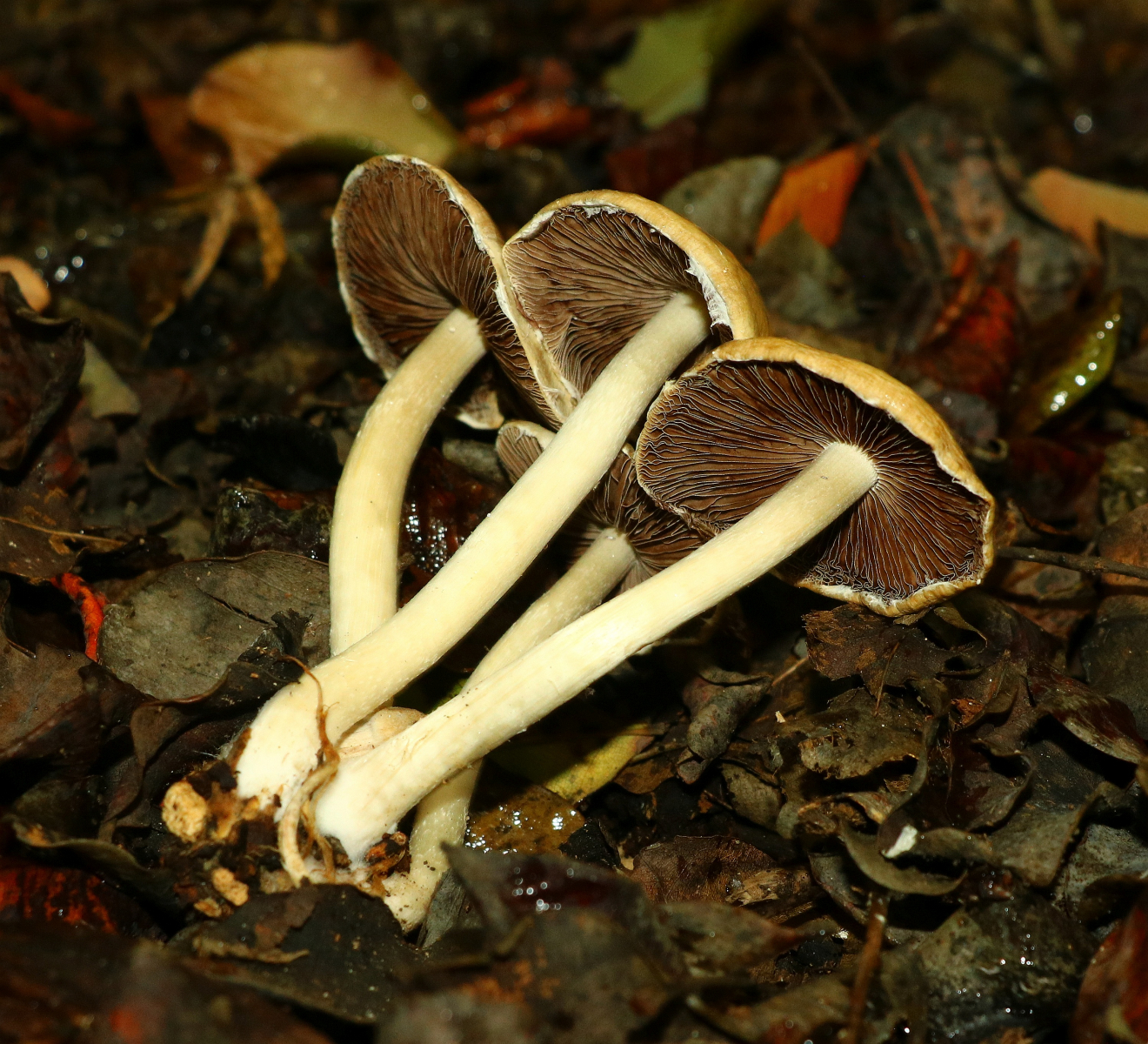 I found a clump of four fruiting bodies emerging from dead bark under detritus of carob tree which gave me the indication of a Psathyreall candolleana, but something did not convince me (and another expert had some thoughts too) maybe the lack of violet tinge of the spores, the long stipes, the very glabrous and polished cuticle.