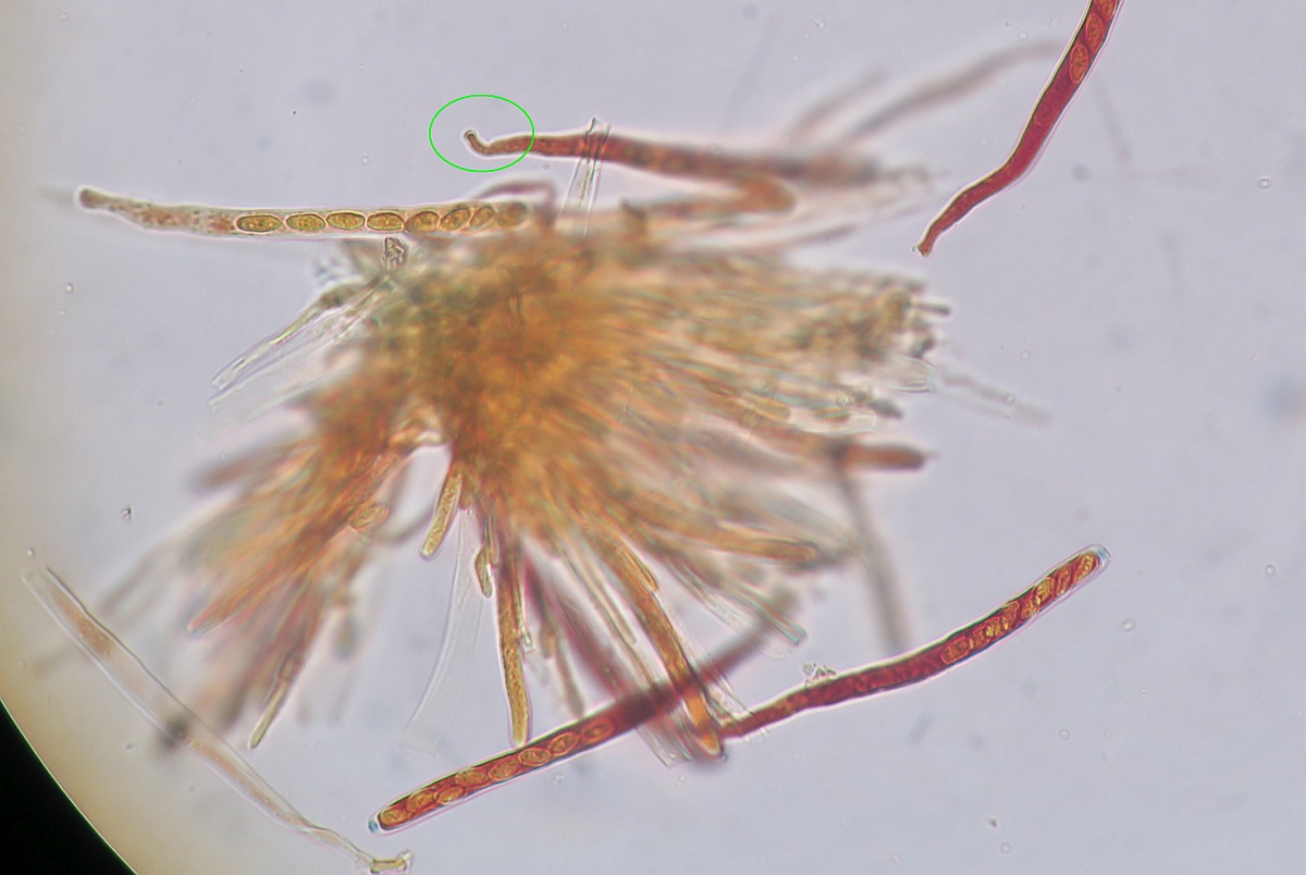 In the attached image, if not aided by other asci that where straight, this bent base in green circle gave me the impression of a crozier.