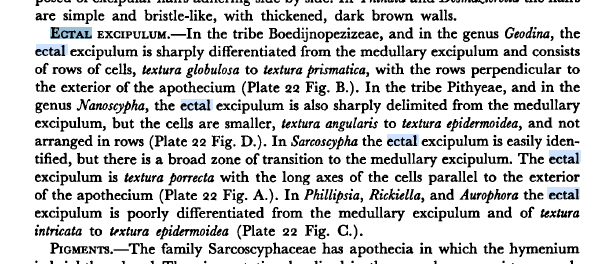 I have difficulty to understand the difference between the ectal and medullary excipulum tissue. Sometimes there are both and sometimes just a homogenous or transitional. I wish to have more information in regards.