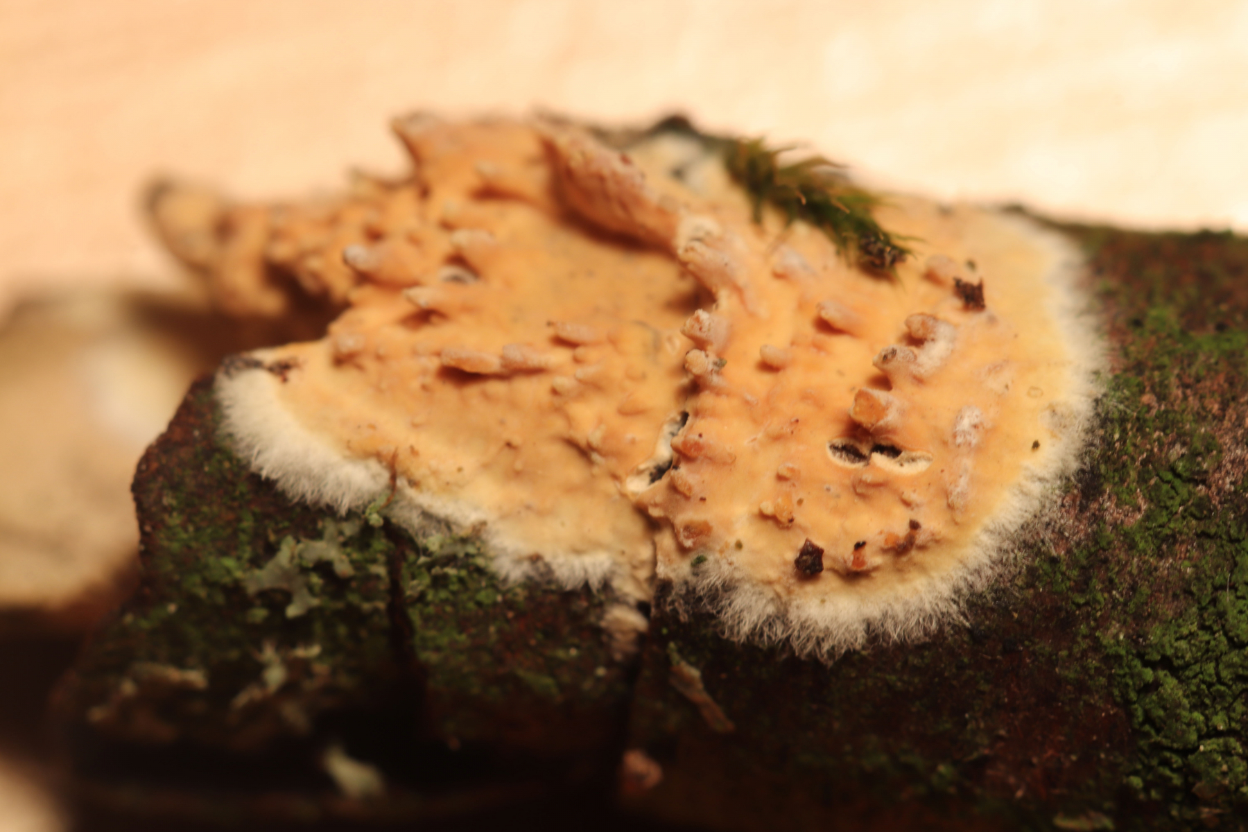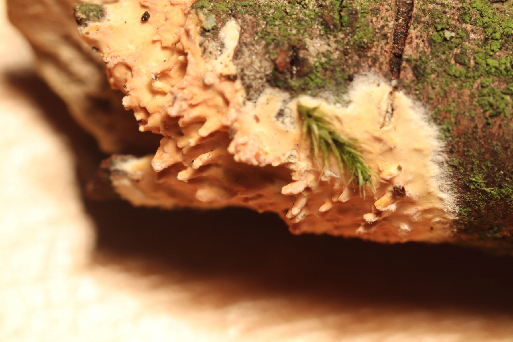 Es gibt aber eine ganze Reihe von Rindenpilzen mit solchen Zähnchen, für eine sichere Bestimmung sollte man hier schon reinlinsen.