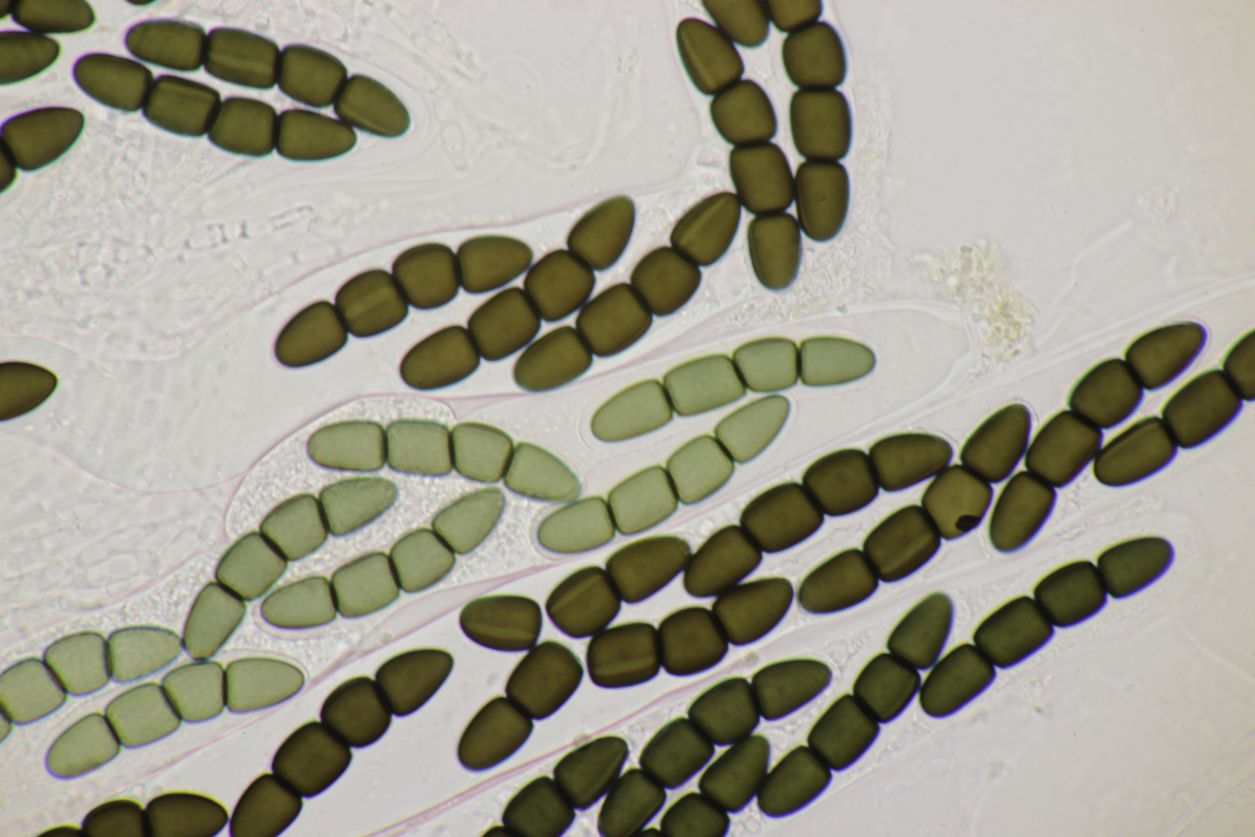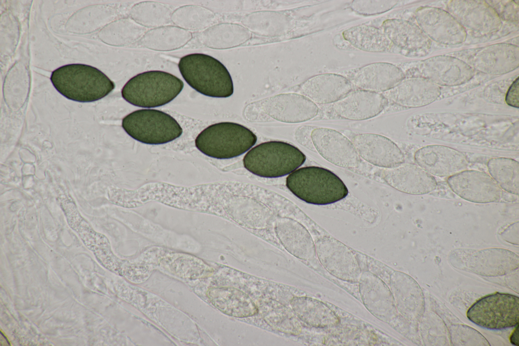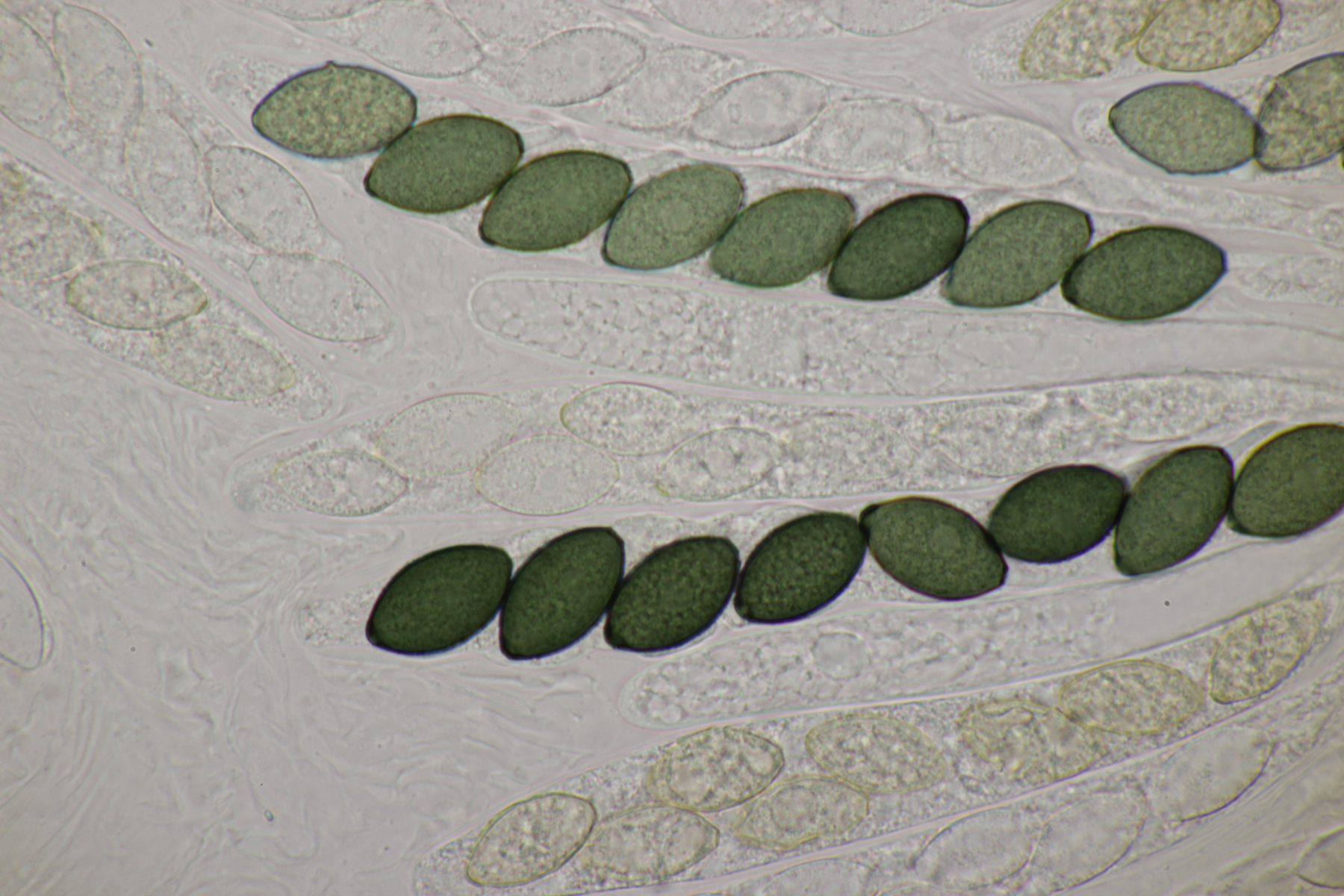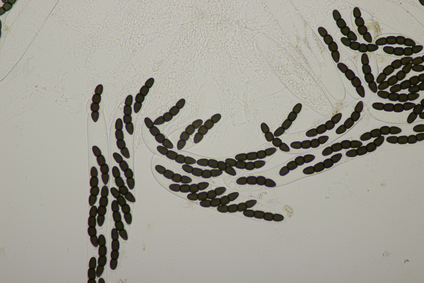 6. Und heute morgen dann ganz frisch eine Sporormiella. Die Sporen messen (51-57) µm x (10-12) µm, die Keimspalten sind parallel, die Asci scheinen unten einen langen, dünnen Stiel zu haben. Insgesamt lande ich da bei Sporormiella grandispora.