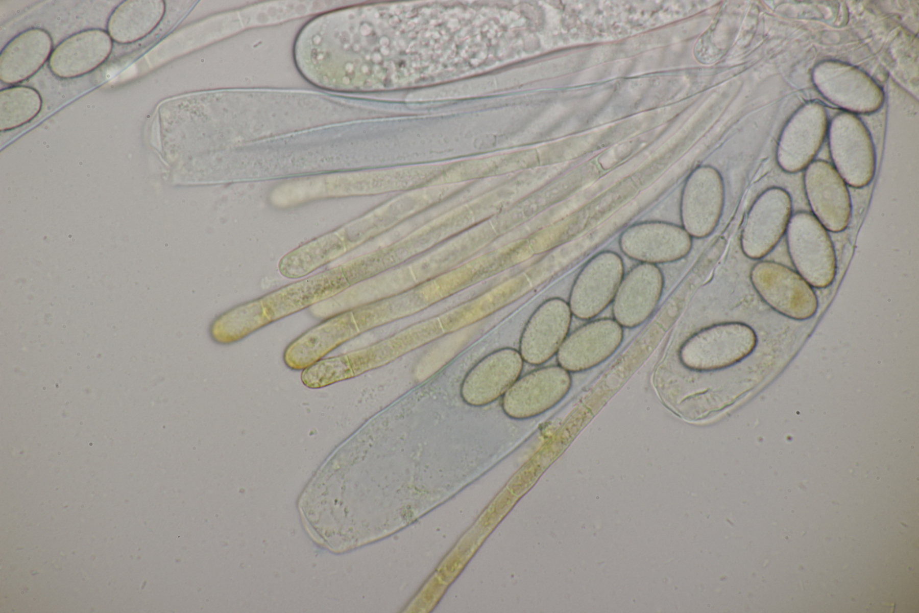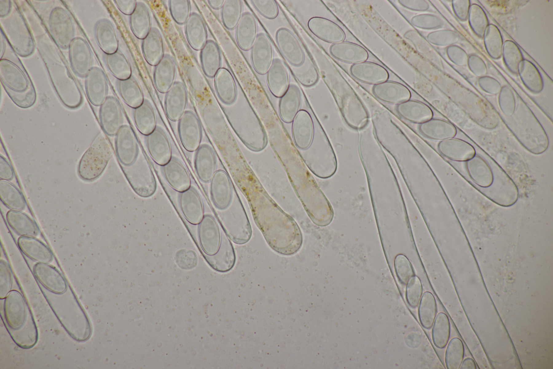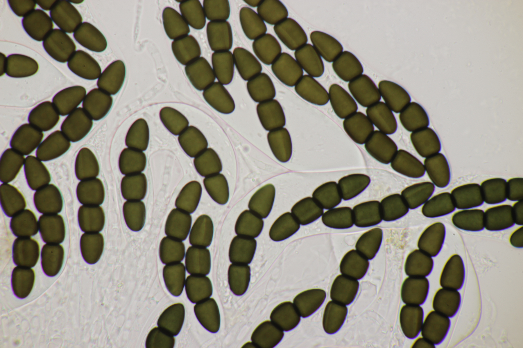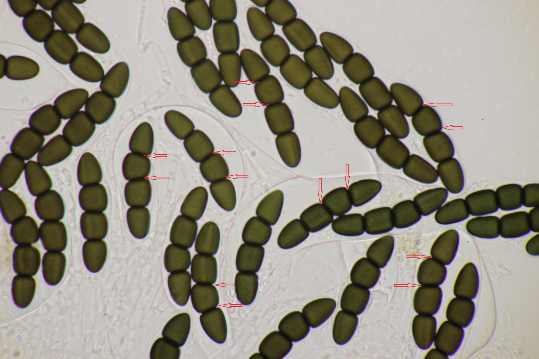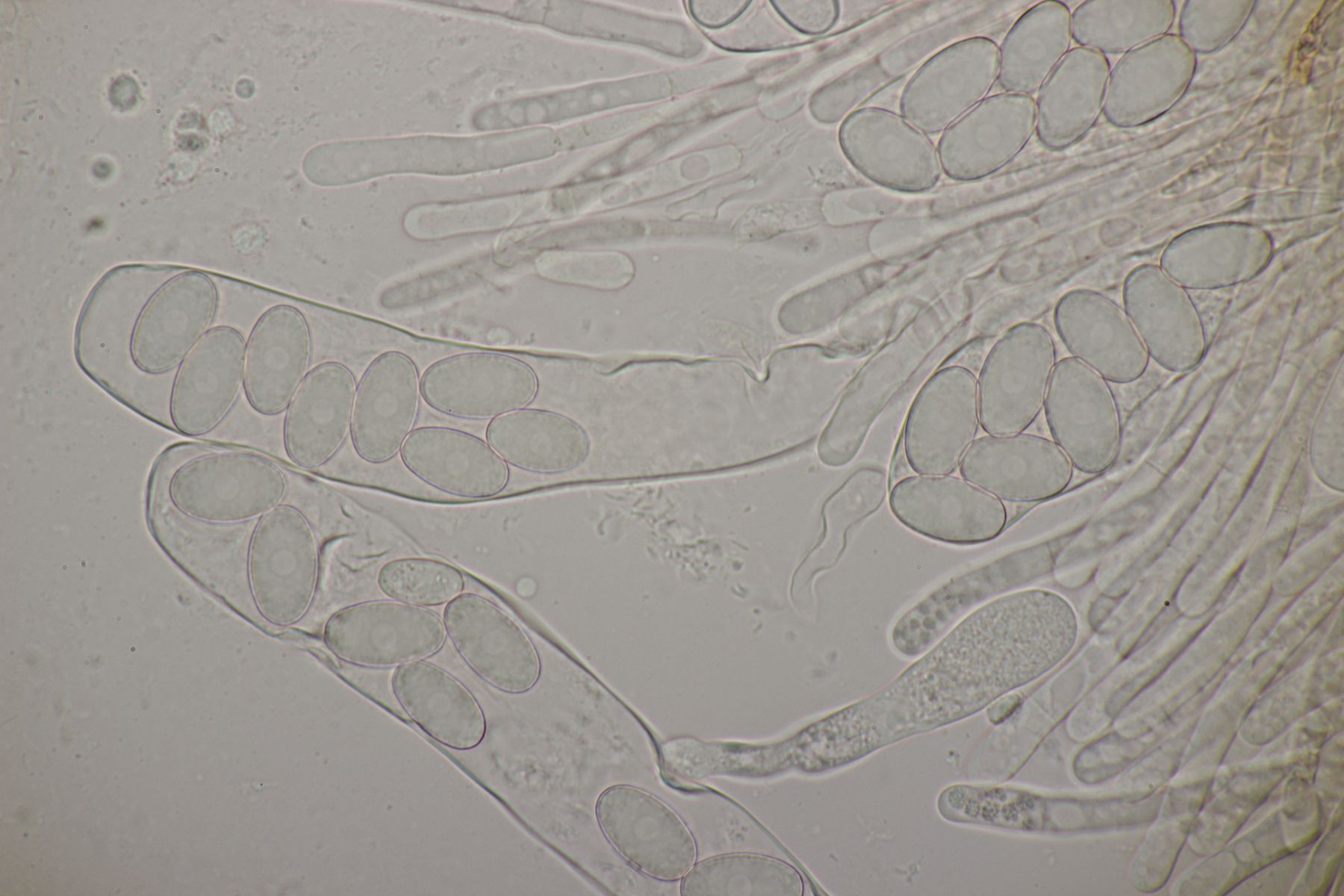 6. Und heute morgen dann ganz frisch eine Sporormiella. Die Sporen messen (51-57) µm x (10-12) µm, die Keimspalten sind parallel, die Asci scheinen unten einen langen, dünnen Stiel zu haben. Insgesamt lande ich da bei Sporormiella grandispora.